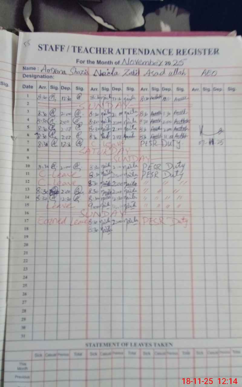| Name: Am**** Sh**** Designation: (School Headmaster's/Headmistress's) Pst Phone/Cell Number: 03**** |