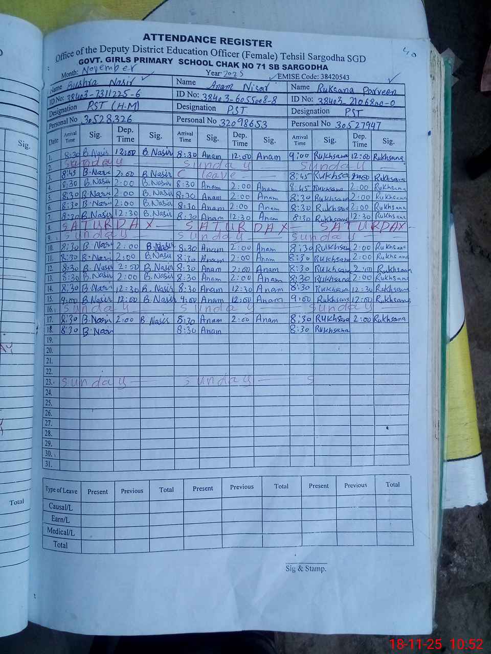 | Name: BU**** NA**** Designation: (School Headmaster's/Headmistress's) PST Phone/Cell Number: 03**** |