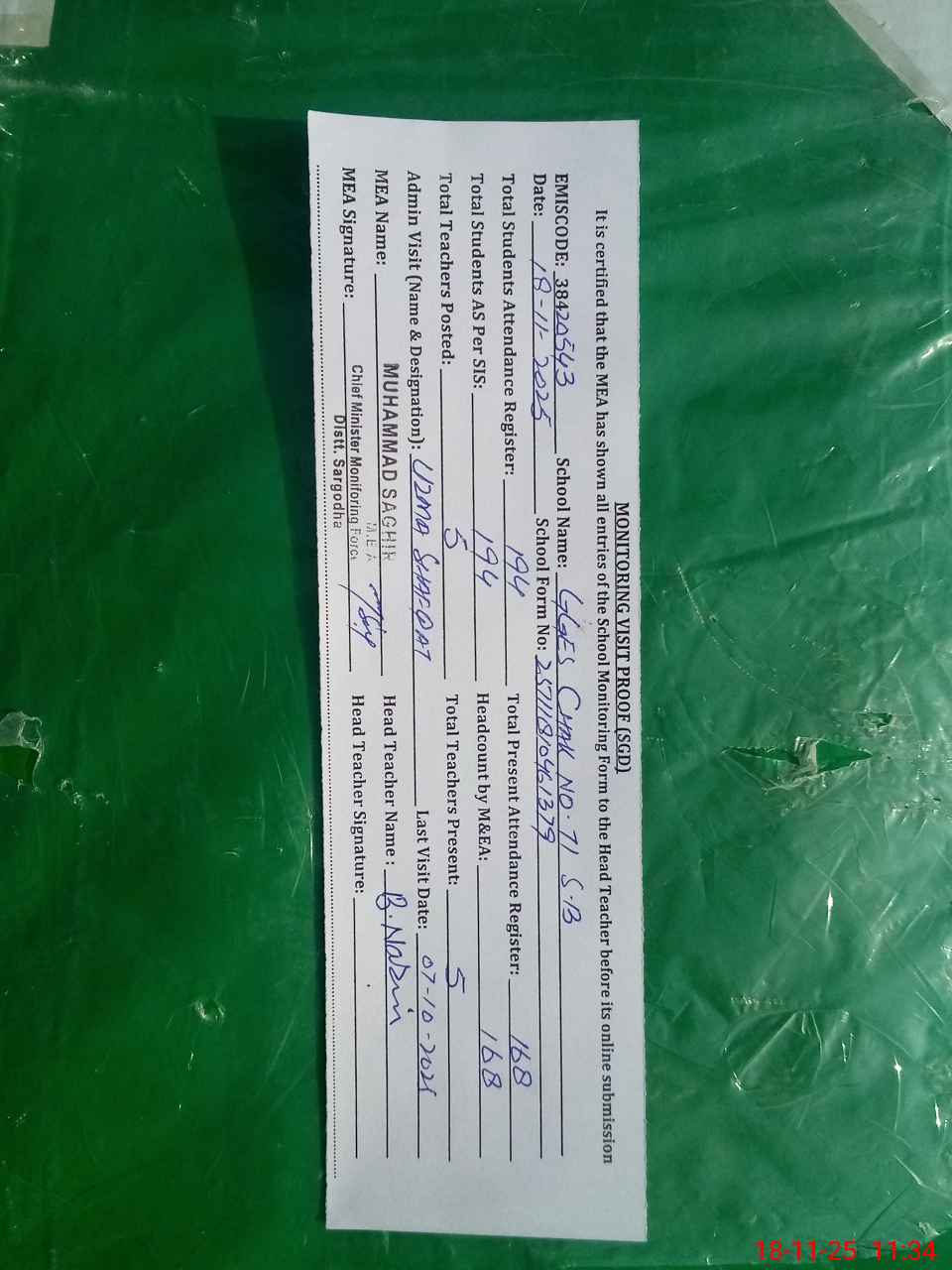 | EMIS Code: 38420543 | Name of School: GGES CHAK NO.71 SB | |||