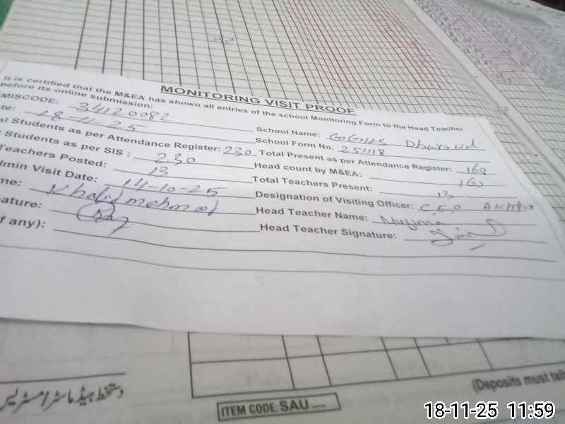 | EMIS Code: 34120082 | Name of School: GGHS DHARO WAL | |||
