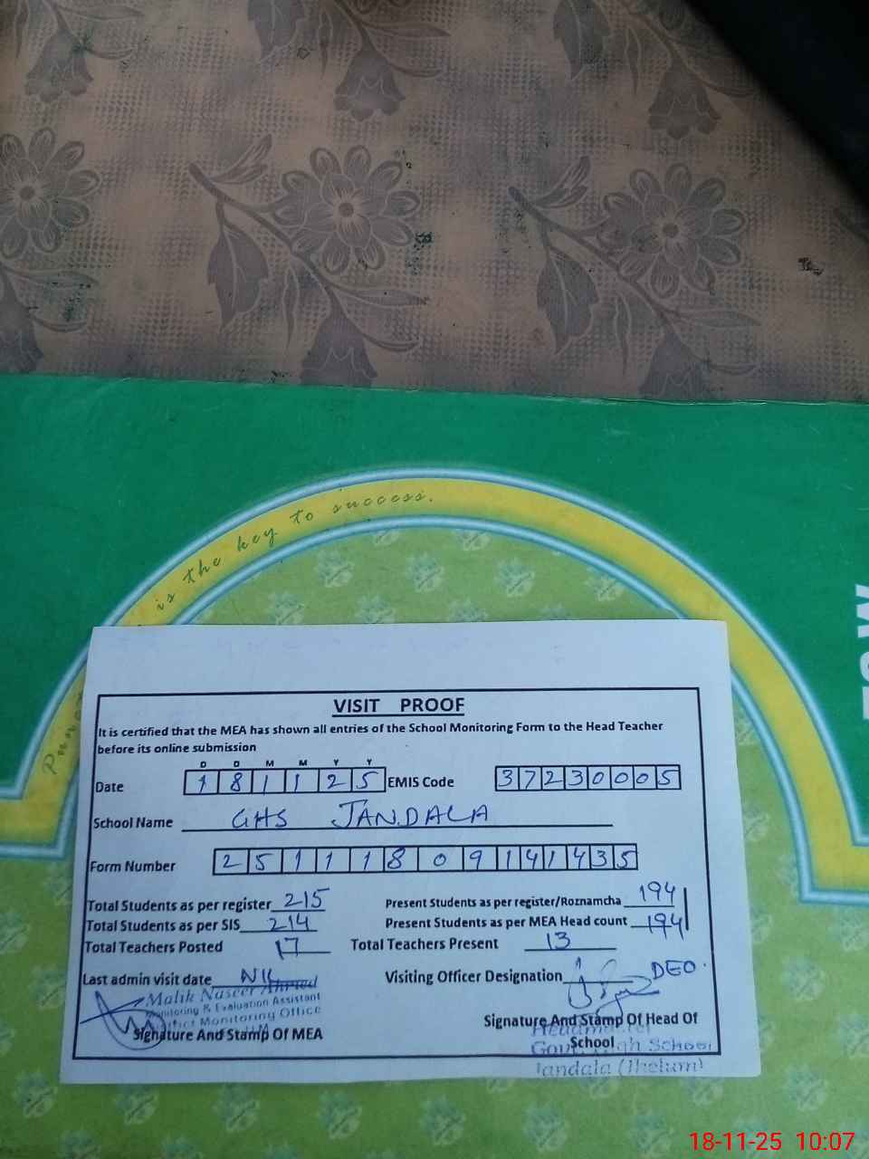 | EMIS Code: 37230005 | Name of School: GHS JANDALA | |||
