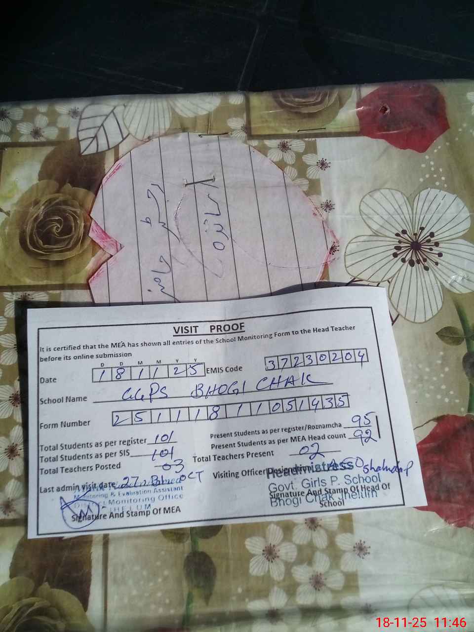 | EMIS Code: 37230204 | Name of School: GGPS BHOGGI CHAK | |||