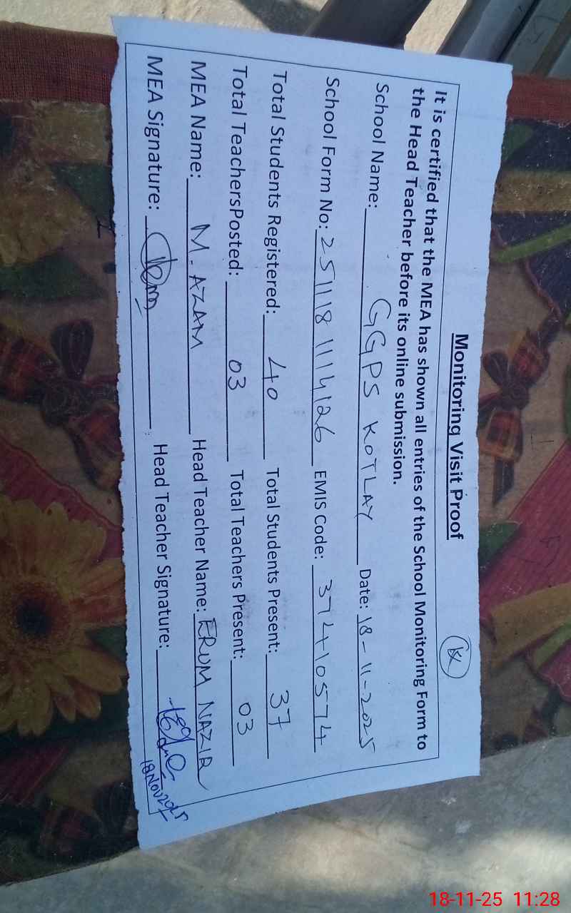 | EMIS Code: 37410574 | Name of School: GGPS KOTLEY | |||