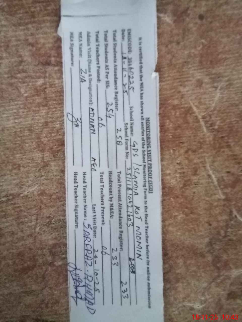 | EMIS Code: 38460225 | Name of School: GPS ISLAMIA KOT MOMIN | |||