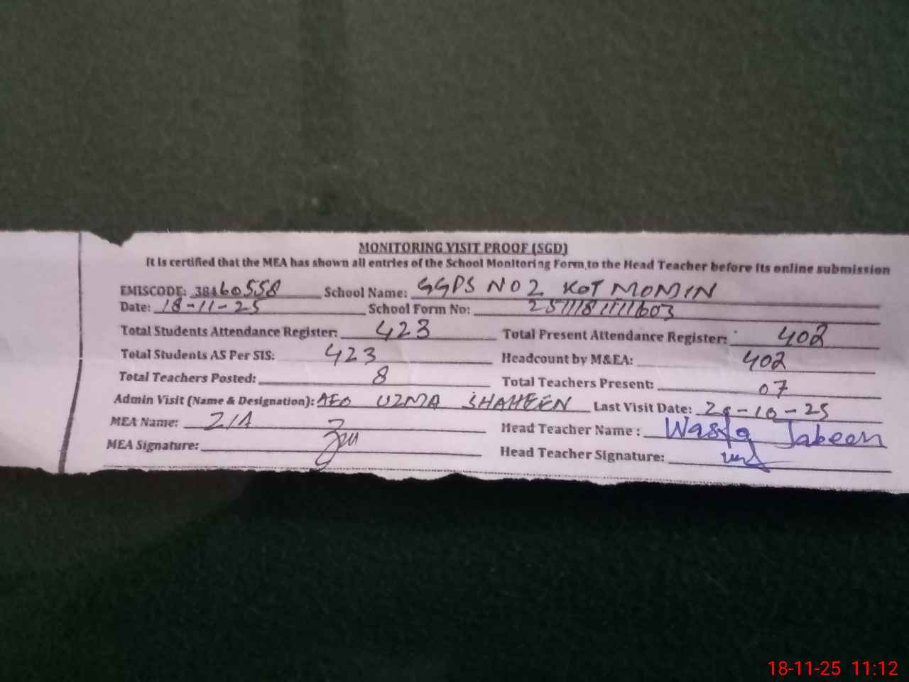 | EMIS Code: 38460558 | Name of School: GGPS NO. 2 KOT MOMIN | |||
