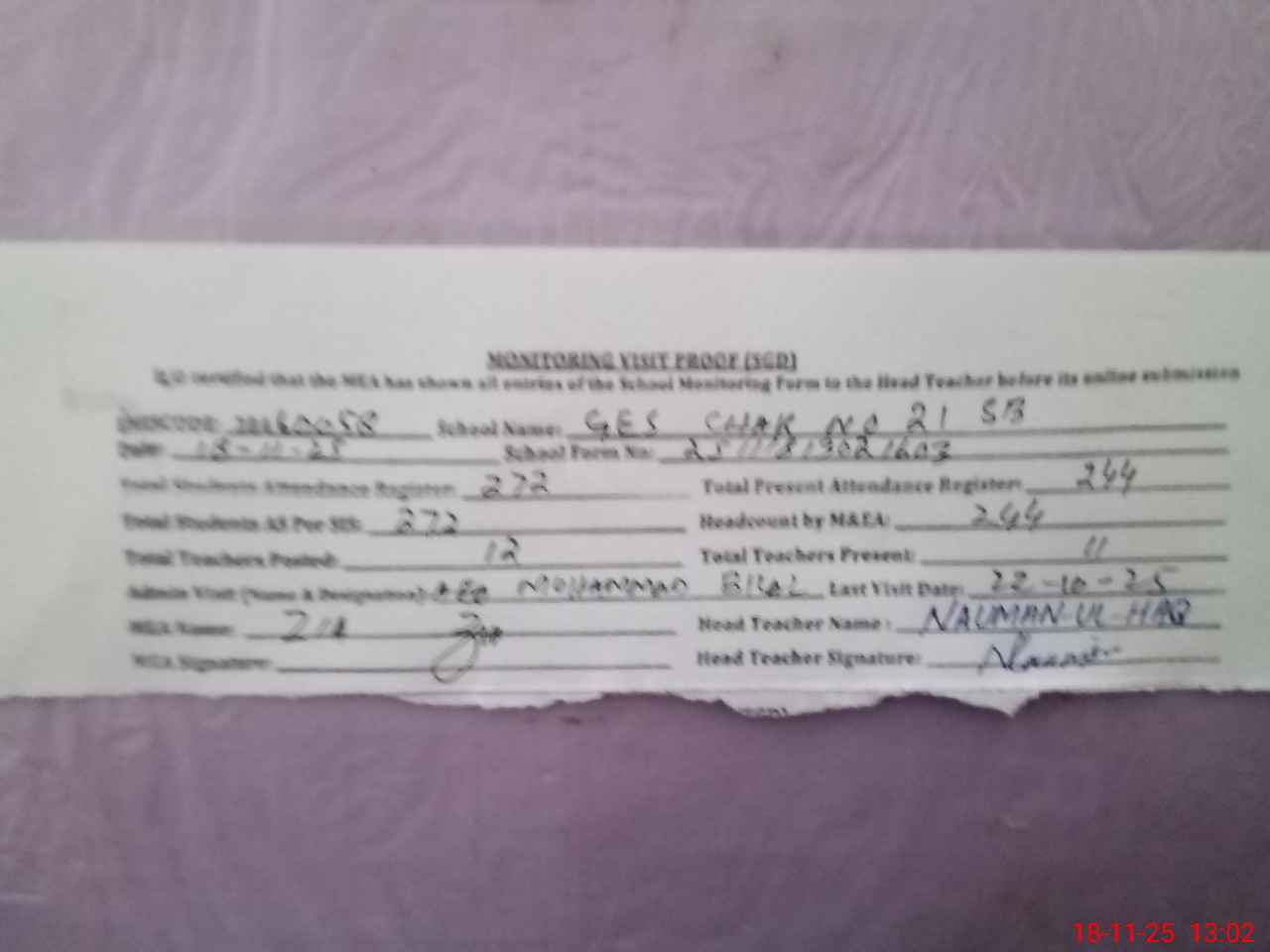 | EMIS Code: 38460058 | Name of School: GES CHAK NO.21 SB | |||
