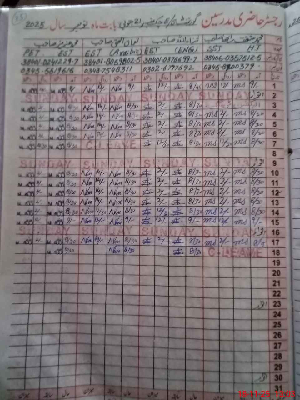 | Name: Mu**** Sh**** Designation: (School Headmaster's/Headmistress's) SST Arts Phone/Cell Number: 03**** |