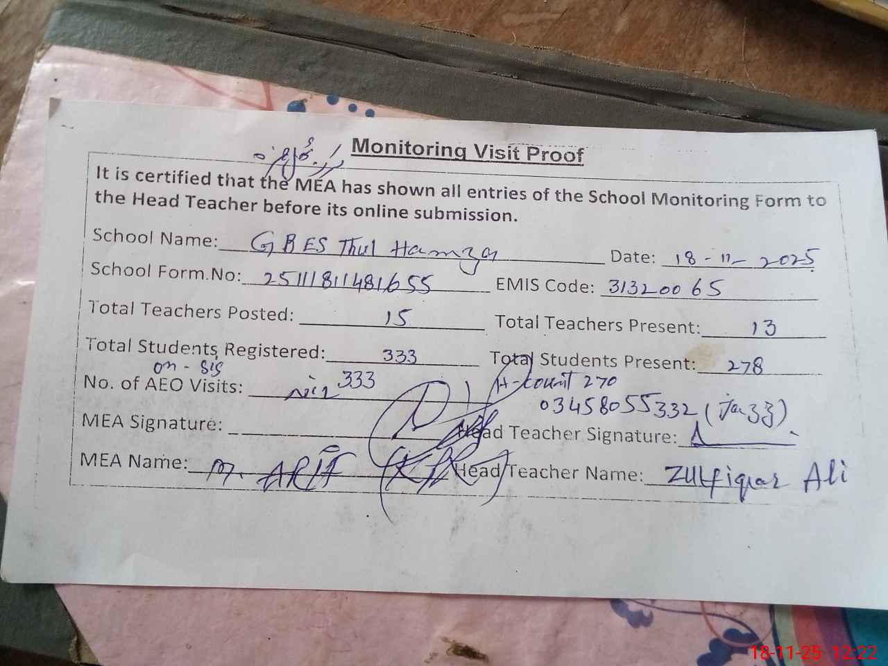 | EMIS Code: 31320065 | Name of School: GES THUL HAMZA | |||