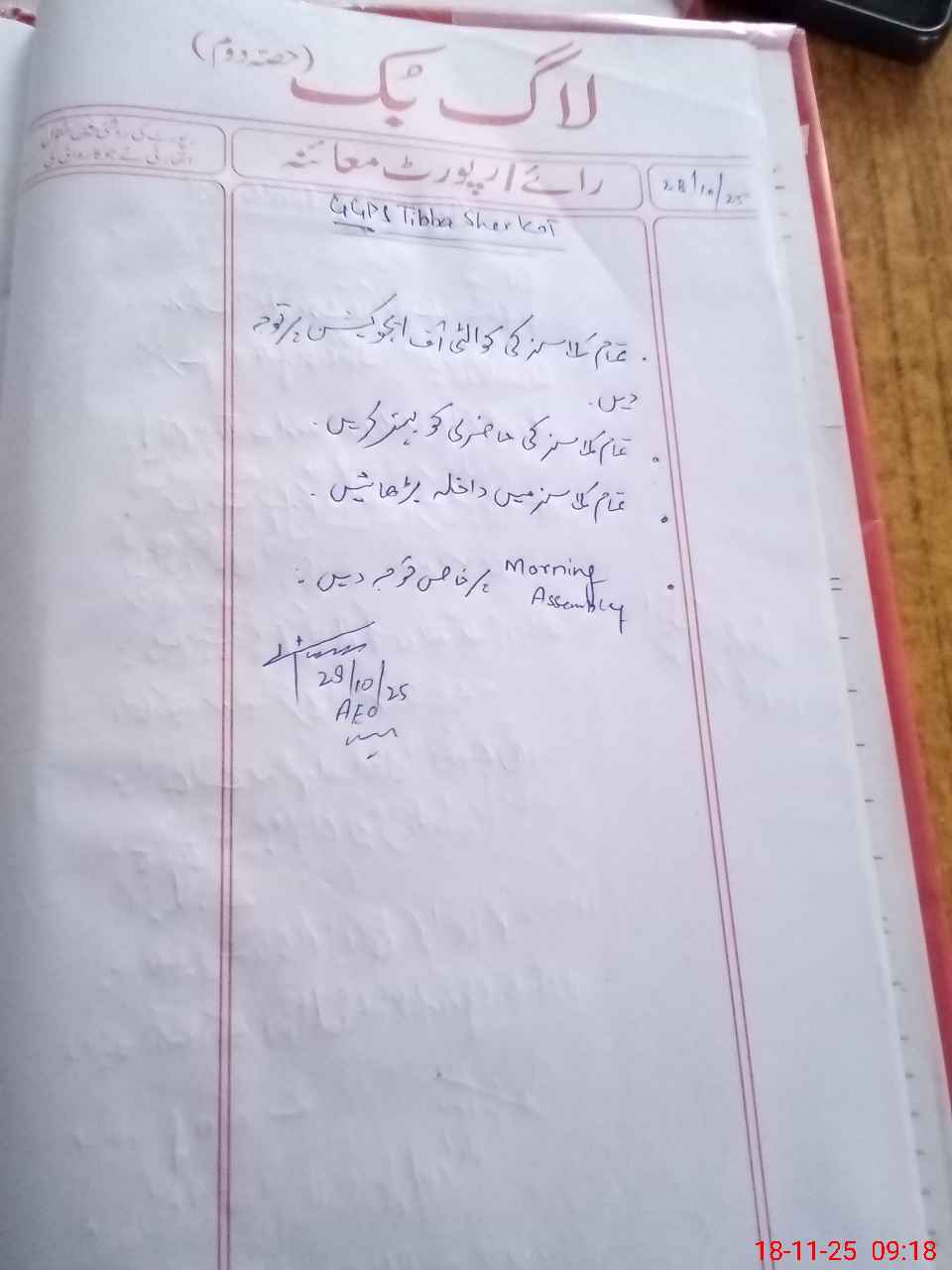 | Monitoring Date: 18-11-2025 | Start Time: 18-11-2025 09:10 AM | End Time: 18-11-2025 10:18 AM | Name of MEA: AM**** UL**** | |