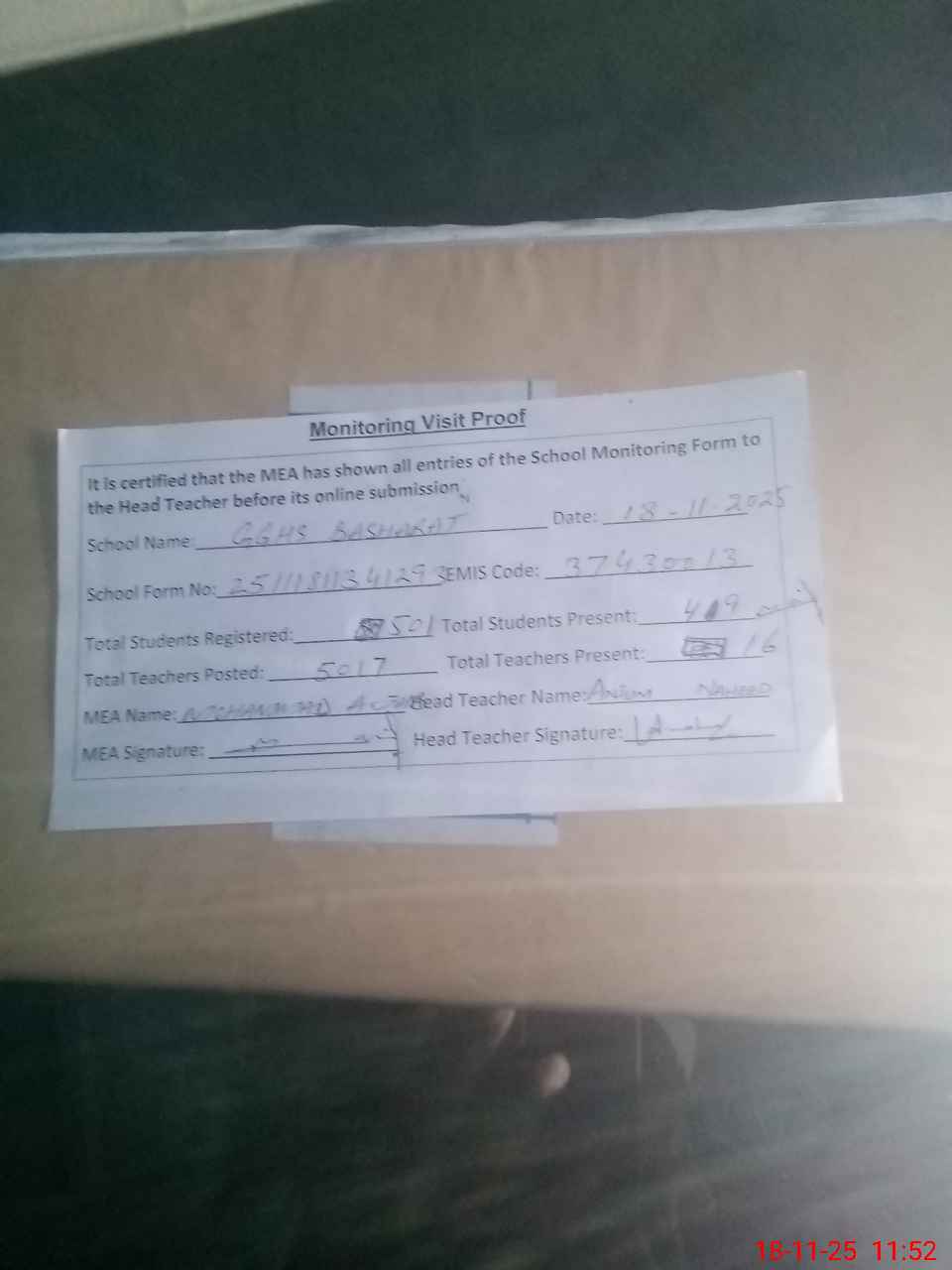 | EMIS Code: 37430013 | Name of School: GGHS BASHARAT | |||