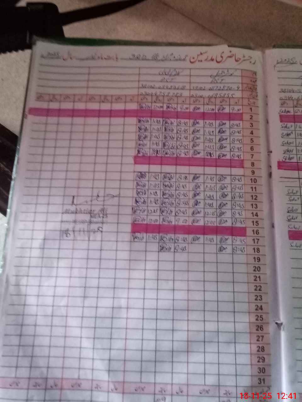 | CNIC | Full Name | Designation | R/C | Absence During Last Calender Month |