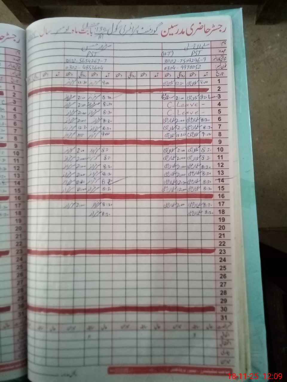 | Name: Sa**** Al**** Designation: (School Headmaster's/Headmistress's) PST Phone/Cell Number: 03**** |