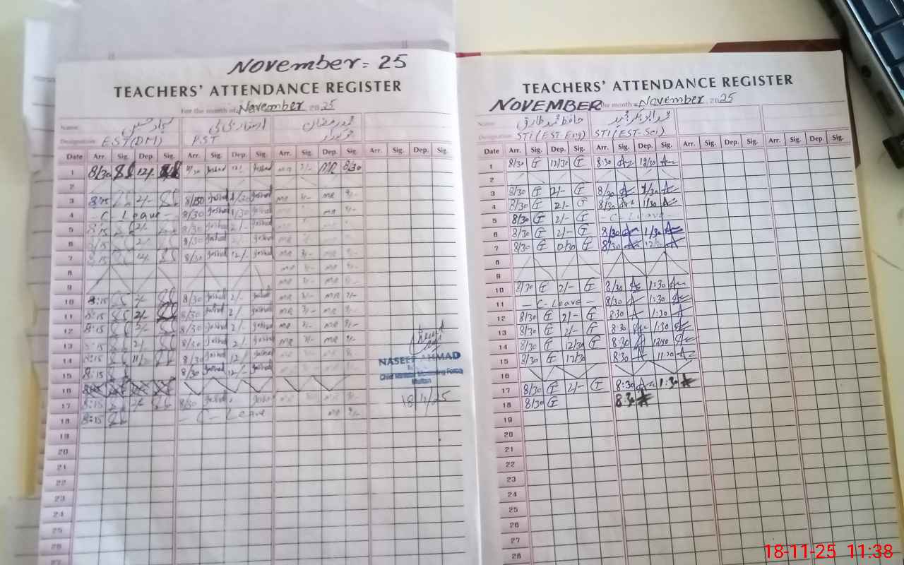 | CNIC | Full Name | Designation | R/C | Absence During Last Calender Month |