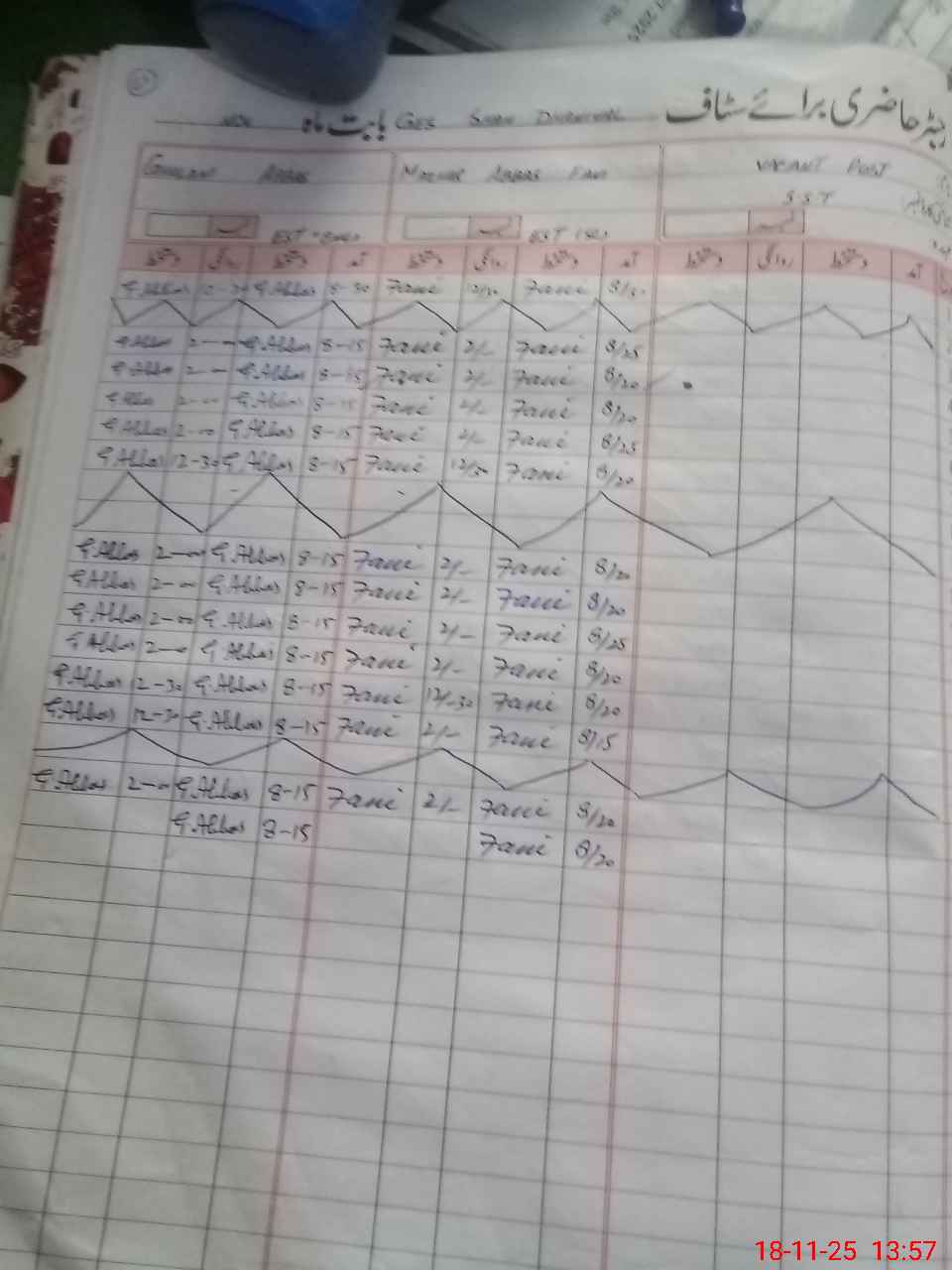 | CNIC | Full Name | Designation | R/C | Absence During Last Calender Month |