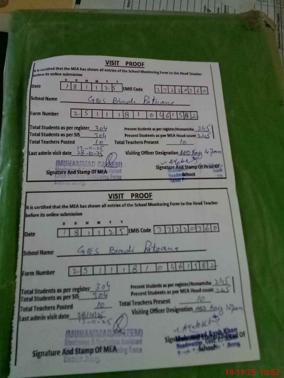 | Certified that this School was Inspected by the Undersigned MEA/DMO Today and the Information Stated Above is as Per Record. | |||||