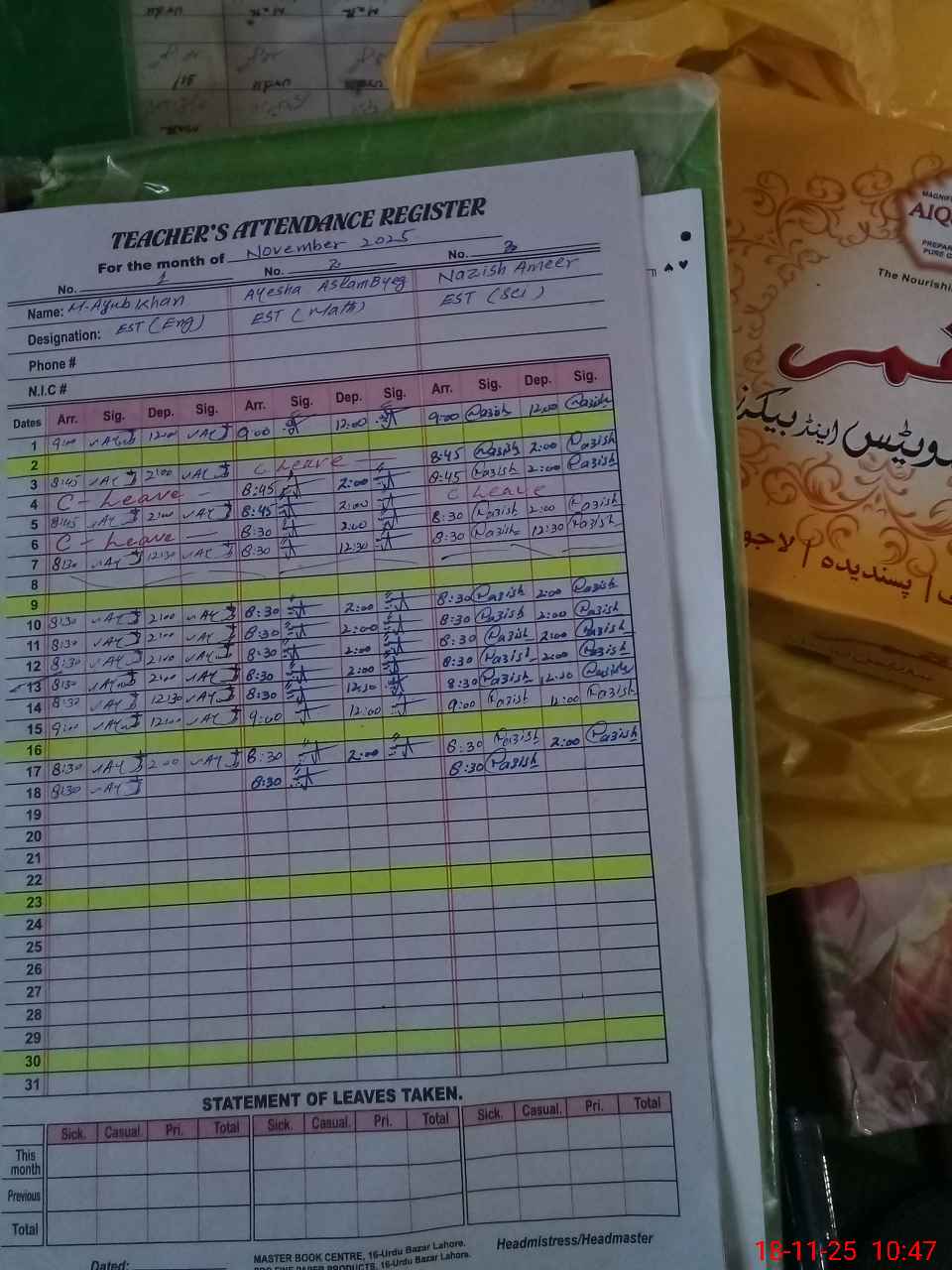 | 33**** | Mu**** Aj**** | CLASS IV | 0 | 0 | 31 | 0 | 0 | 0 | 0 | 0 | 0 | Absent (Un-Authorized) | |