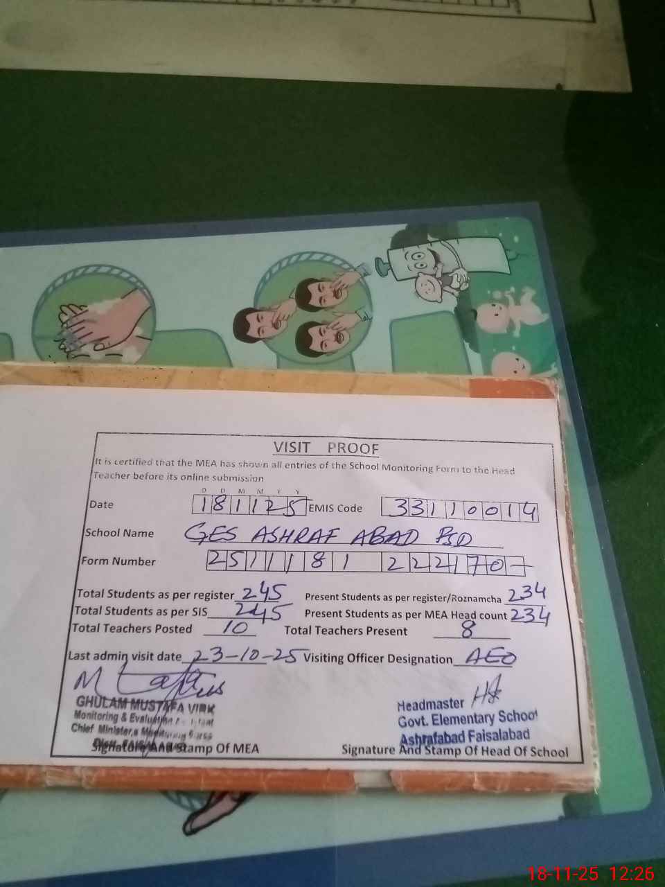 | EMIS Code: 33110014 | Name of School: GES ASHRAF ABAD FSD | |||
