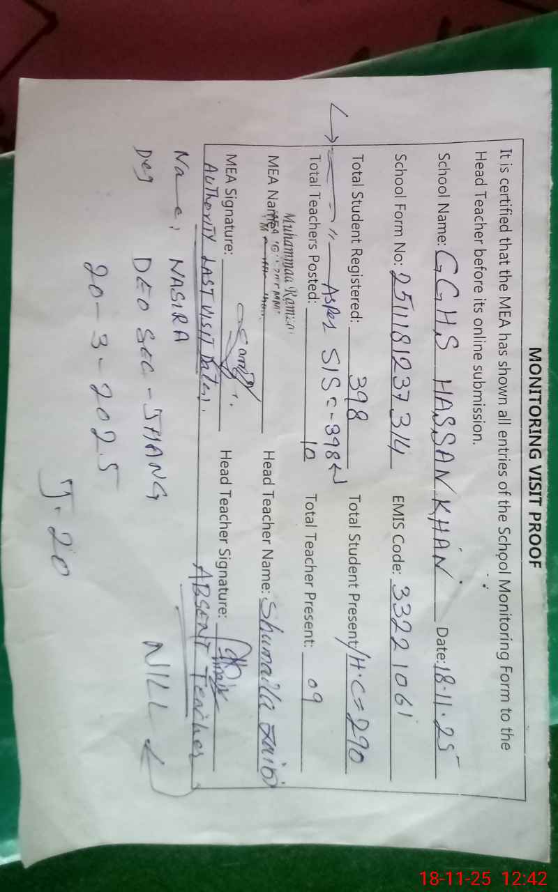 | EMIS Code: 33221061 | Name of School: GGHS HASAN KHAN | |||