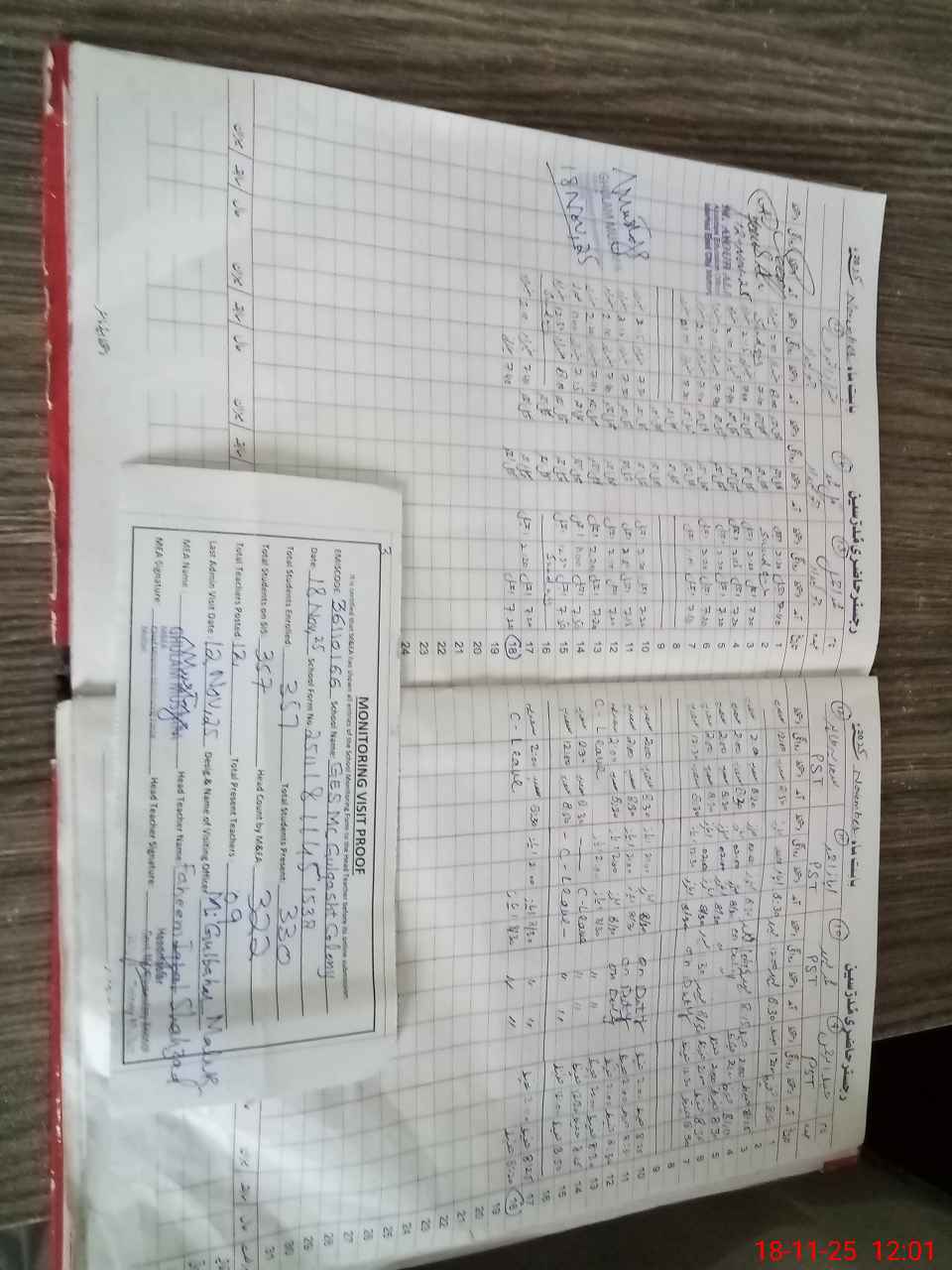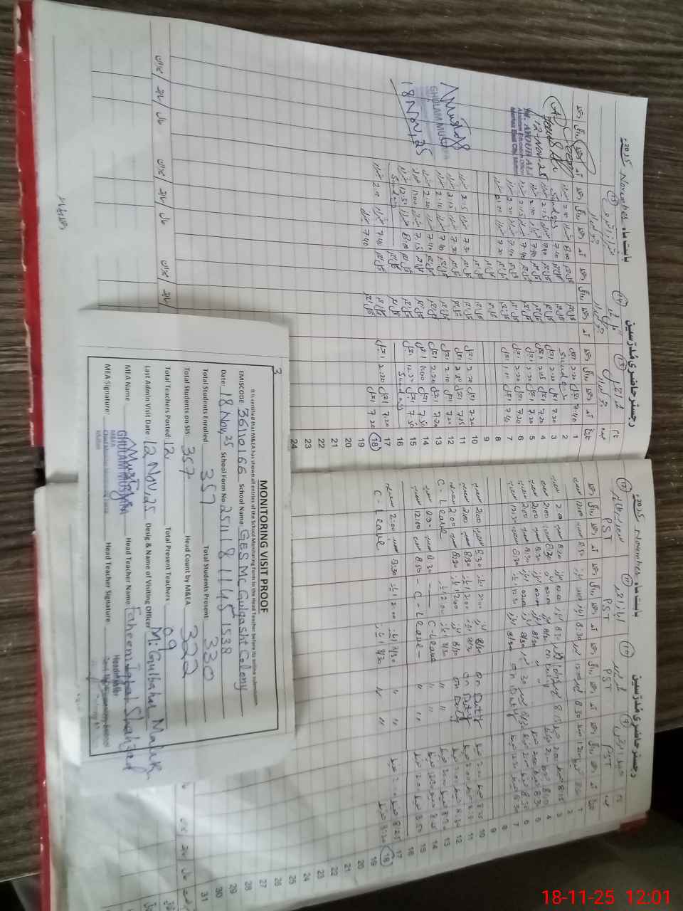 | Attendance Register | Head Teacher | MEA with School | Visit Proof |