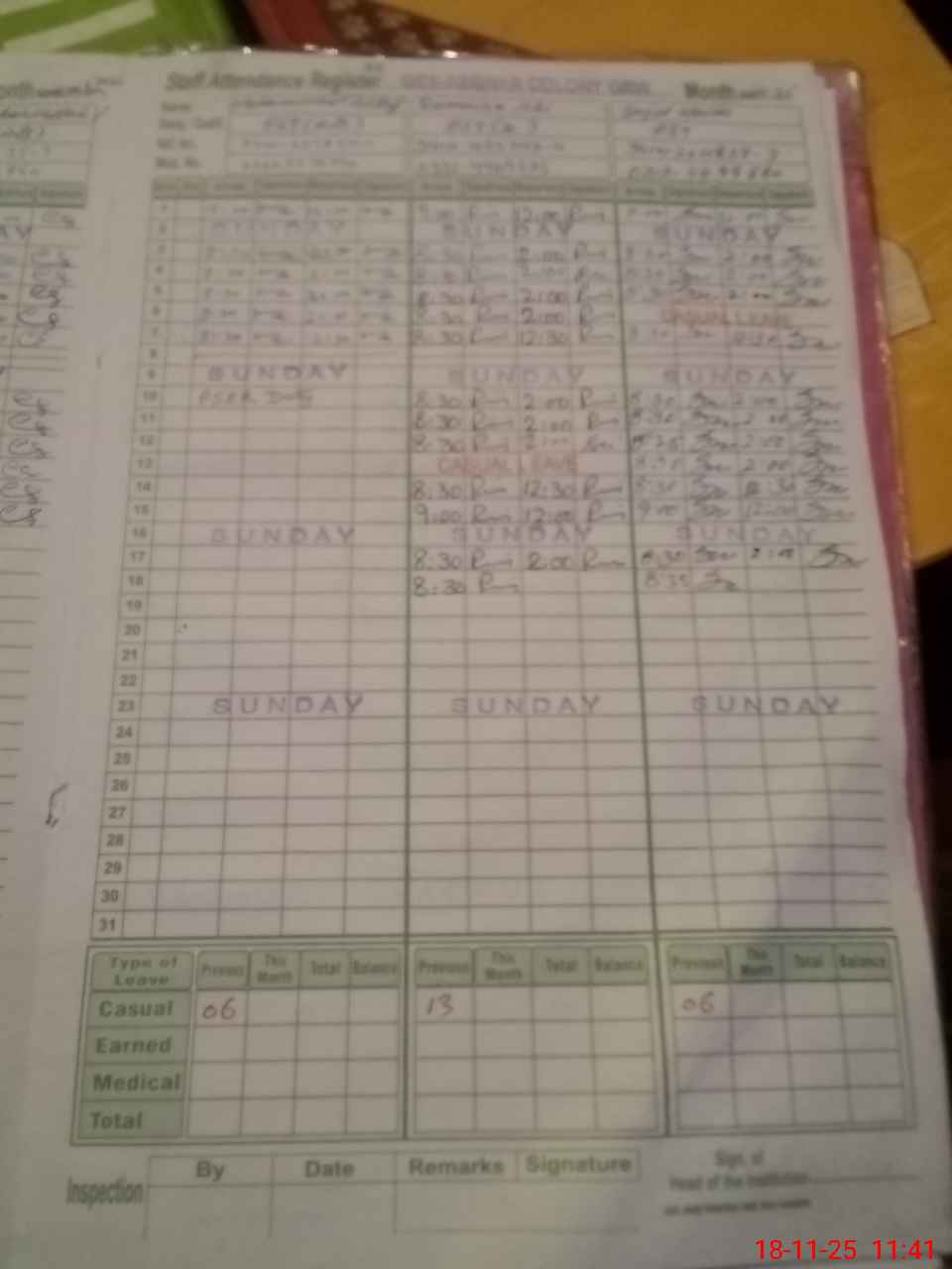| CNIC | Full Name | Designation | R/C | Absence During Last Calender Month |