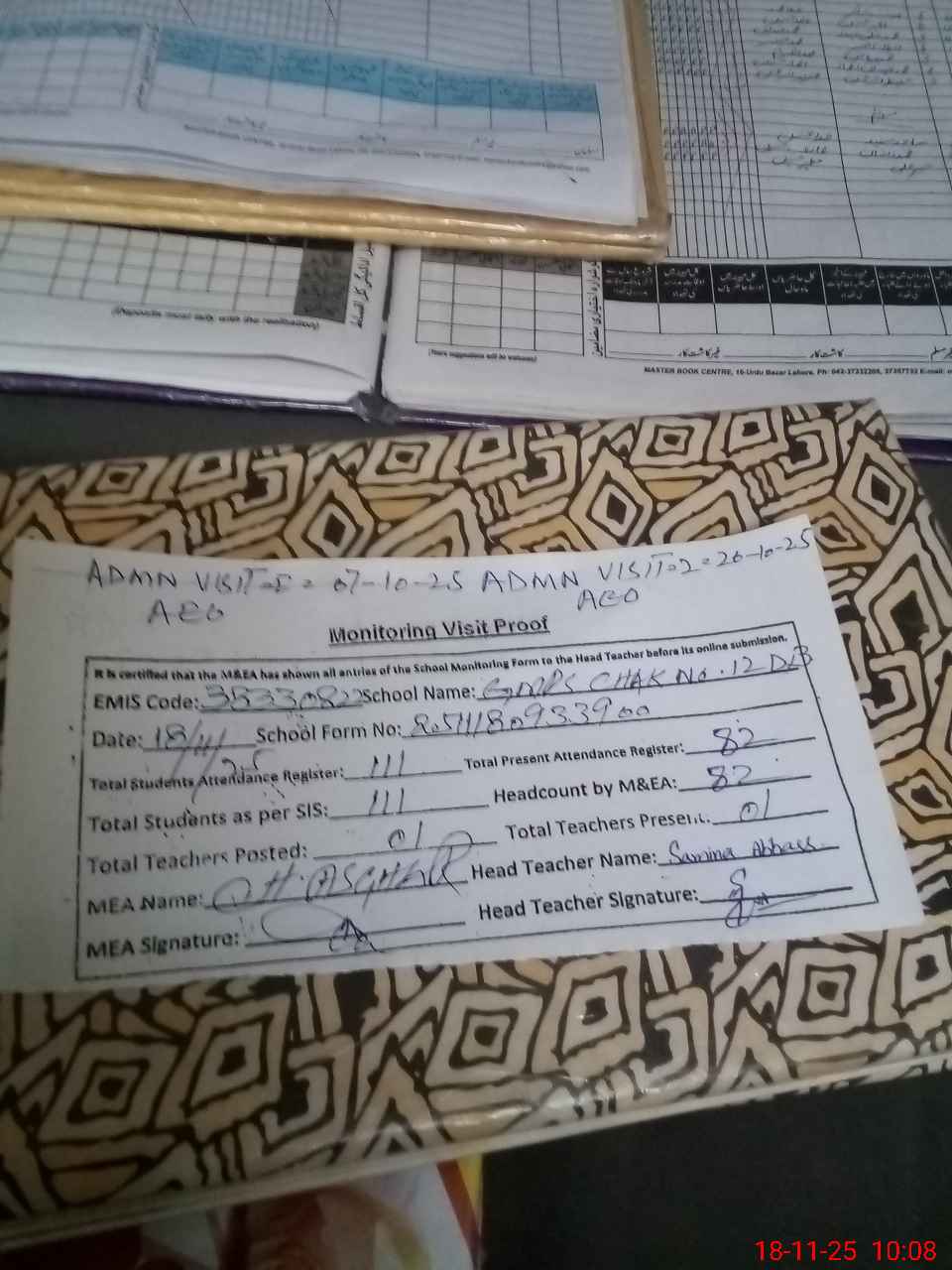 | EMIS Code: 38330822 | Name of School: GMPS CHAK NO 12 DB HERNOLI | |||