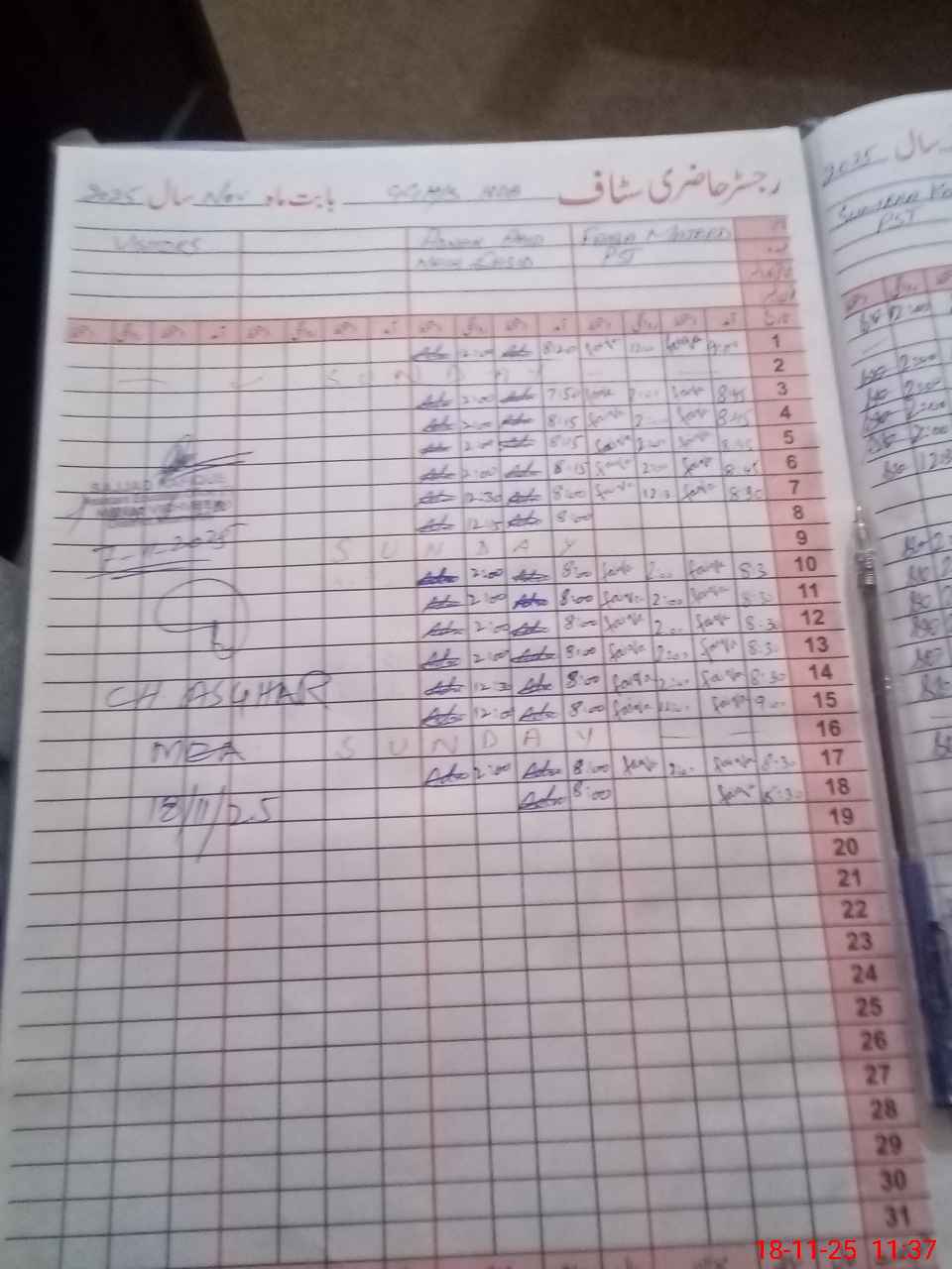 | CNIC | Full Name | Designation | R/C | Absence During Last Calender Month |