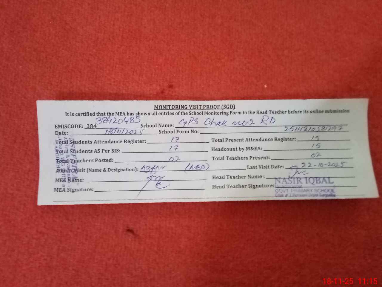 | EMIS Code: 38420483 | Name of School: GPS CHAK NO.2 REMOUNT DEPOT | |||