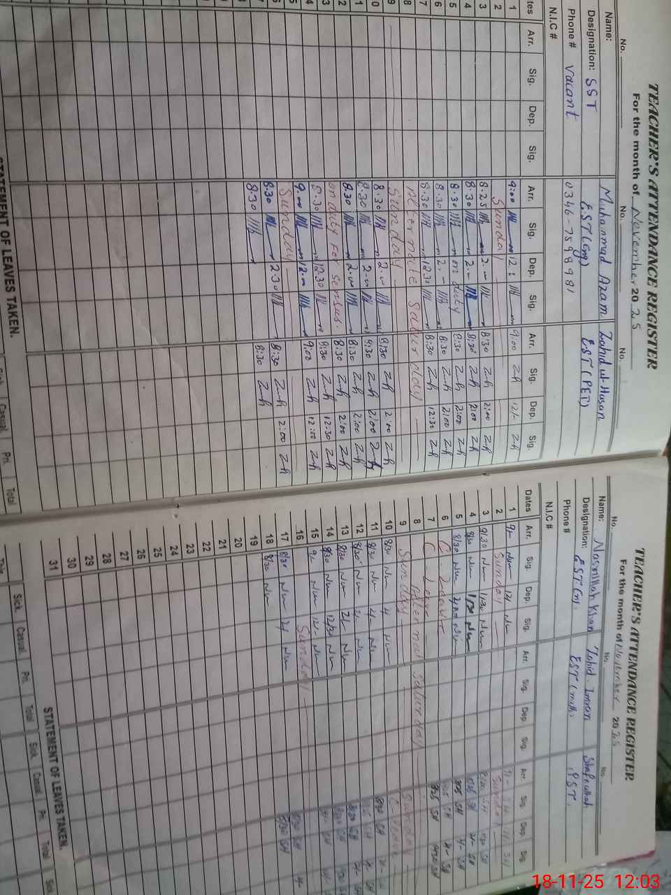| Name: Mu**** Az**** Designation: (School Headmaster's/Headmistress's) Est Phone/Cell Number: 03**** |