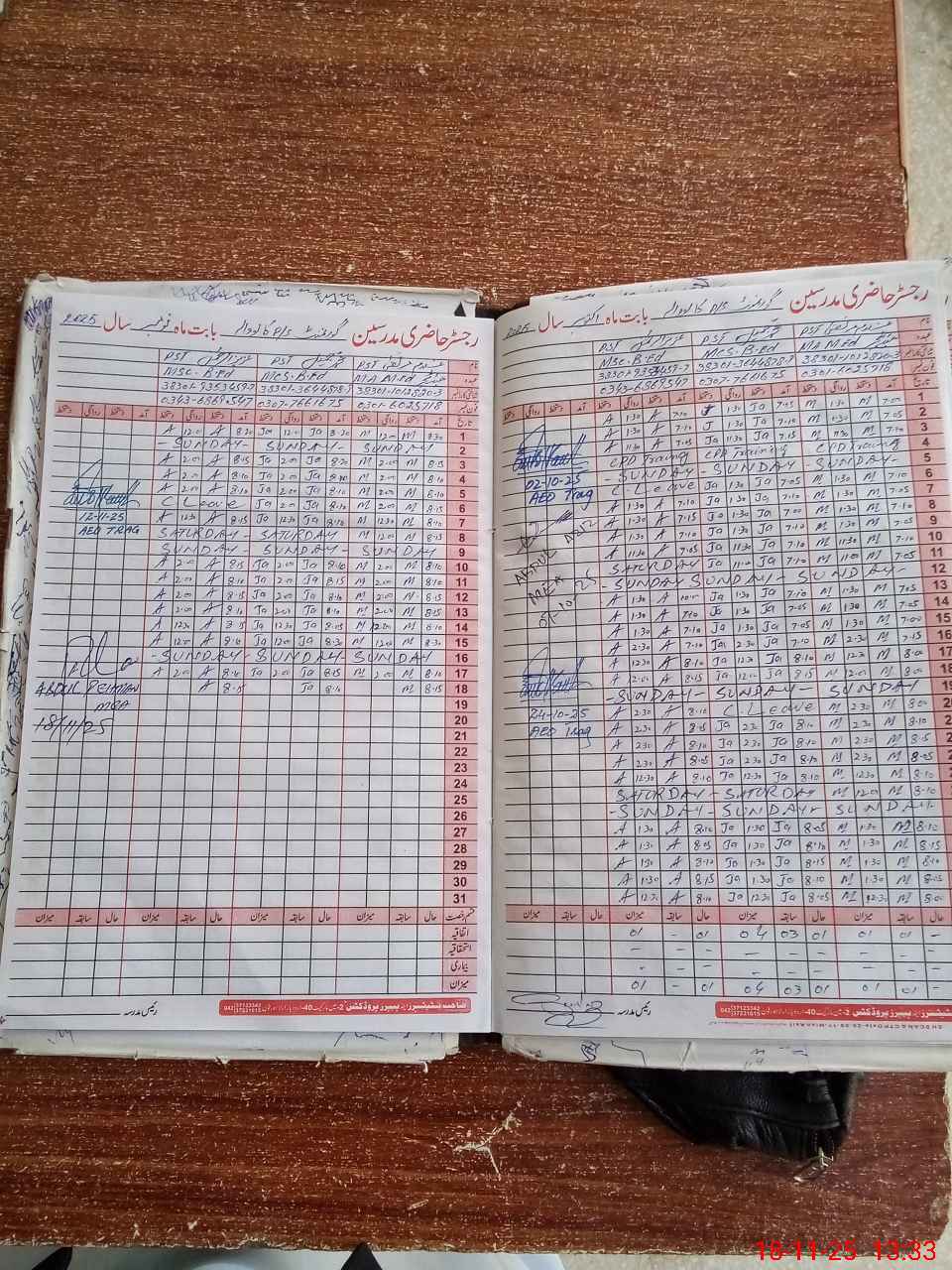 | CNIC | Full Name | Designation | R/C | Absence During Last Calender Month |