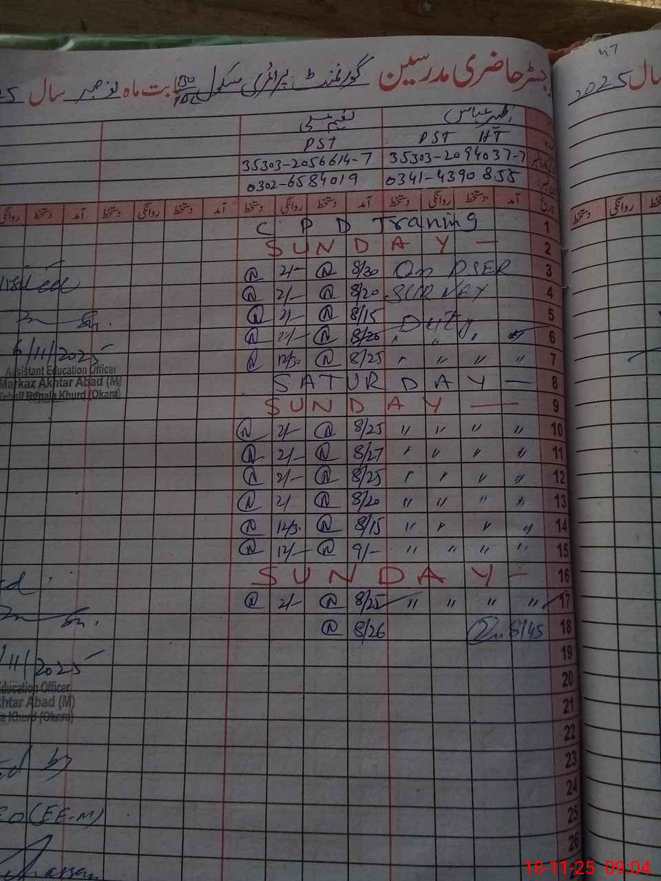 | Name: Za**** Ab**** Designation: (School Headmaster's/Headmistress's) PST Phone/Cell Number: 03**** |