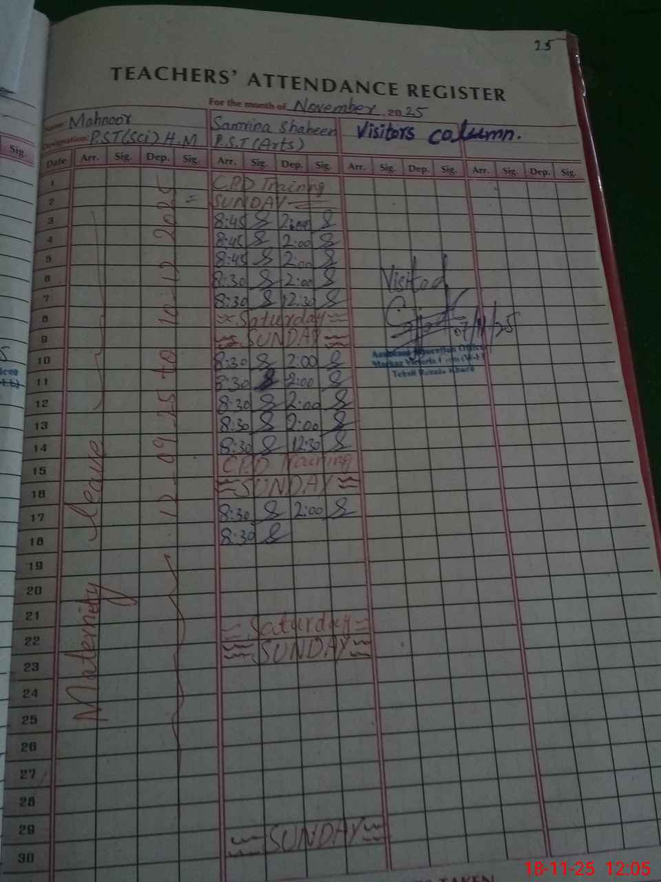 | 35**** | Ma**** | PST | Regular | 31 | 0 | 0 | 31 | 0 | 0 | 0 | 0 | 0 | Maternity |