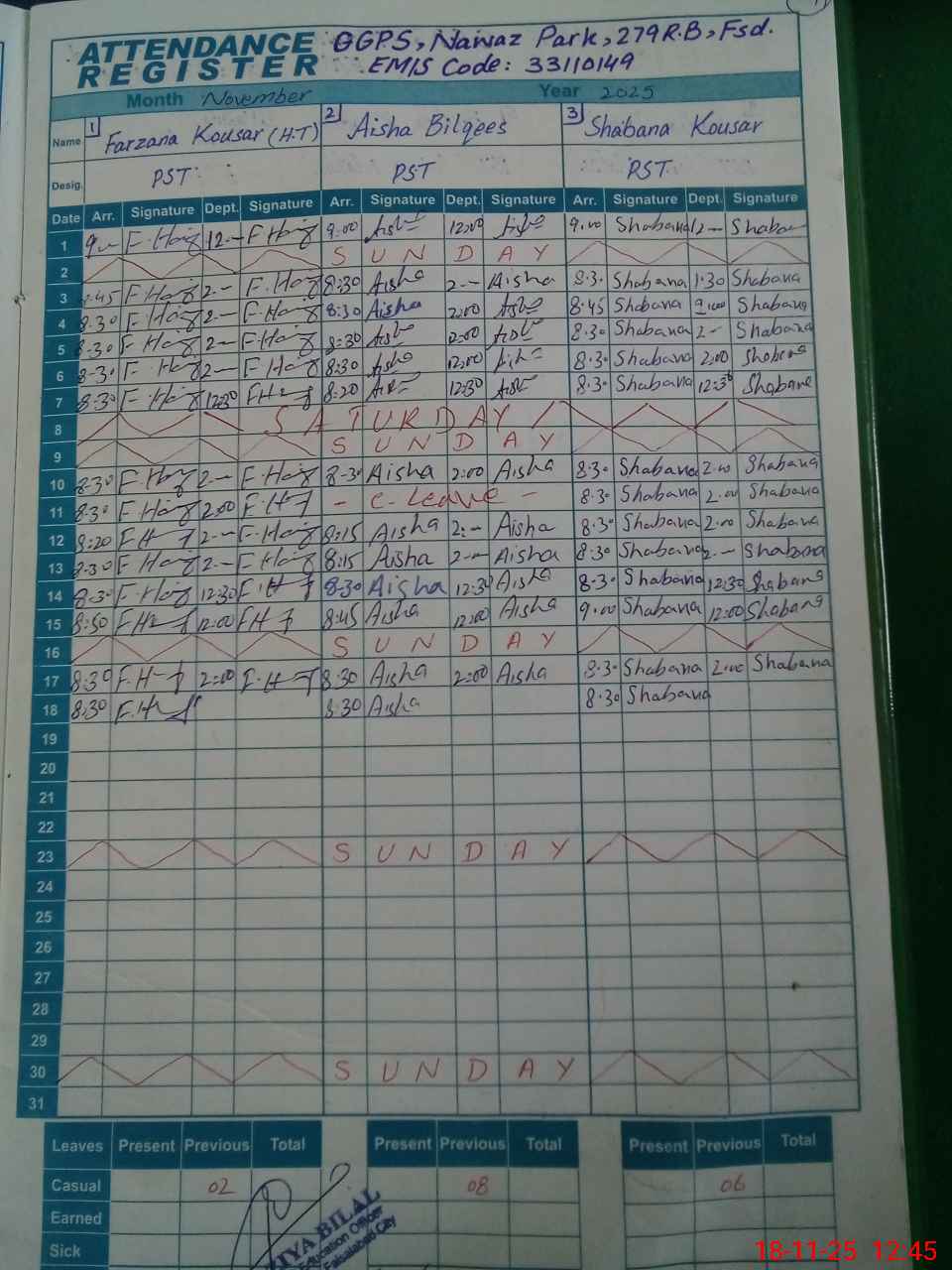 | EMIS Code: 33110149 | Name of School: GGPS NAWAZ PARK | |||