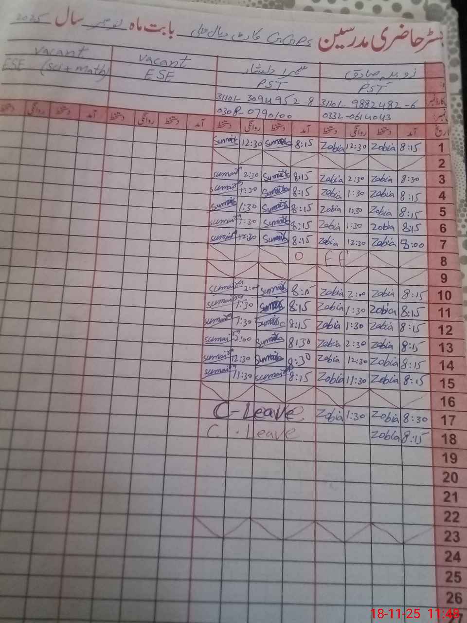 | Name: ZO**** SA**** Designation: (School Headmaster's/Headmistress's) ESE Sci Phone/Cell Number: 03**** |