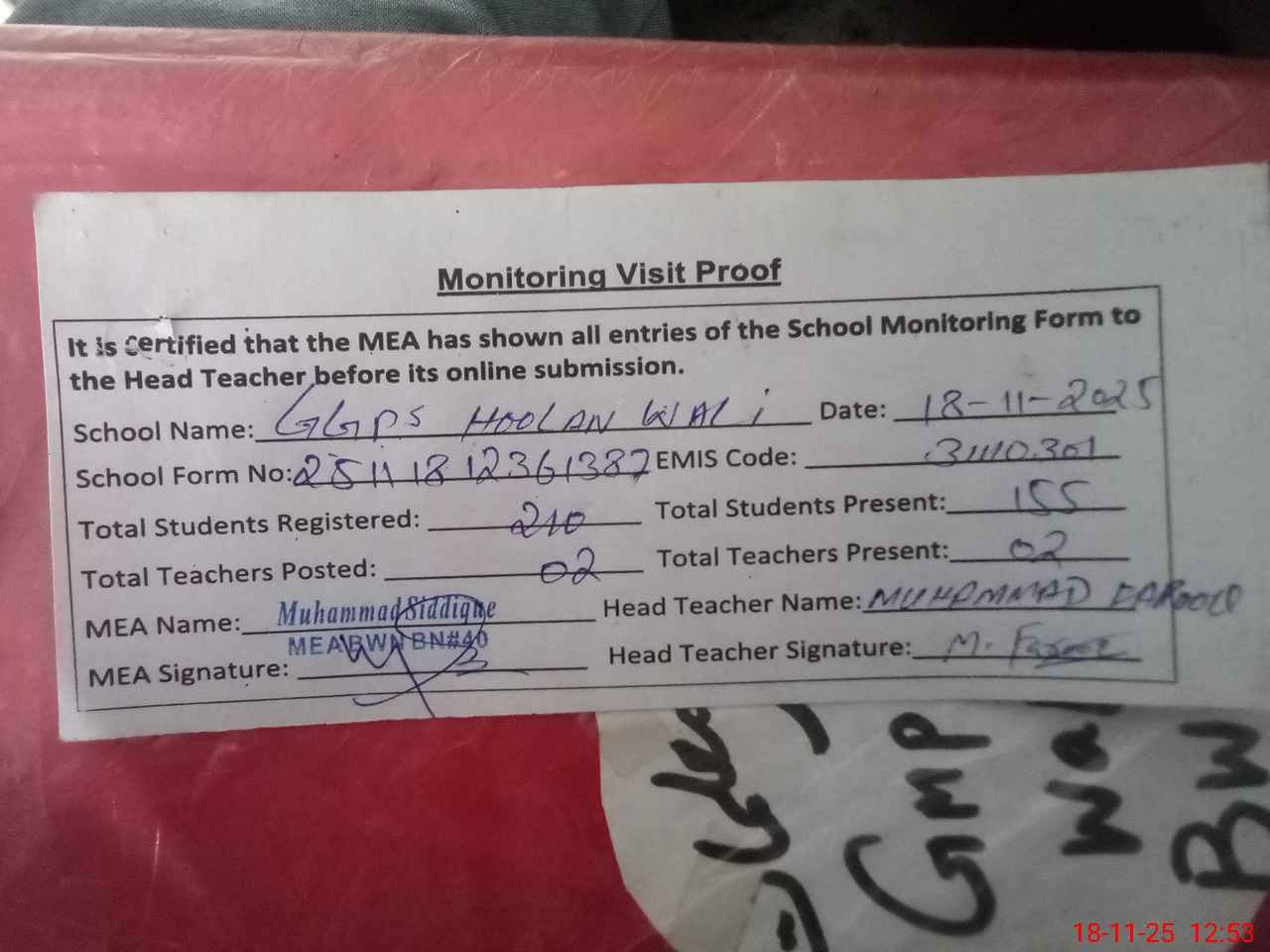 | EMIS Code: 31110301 | Name of School: GGPS HOOLAN WALI | |||