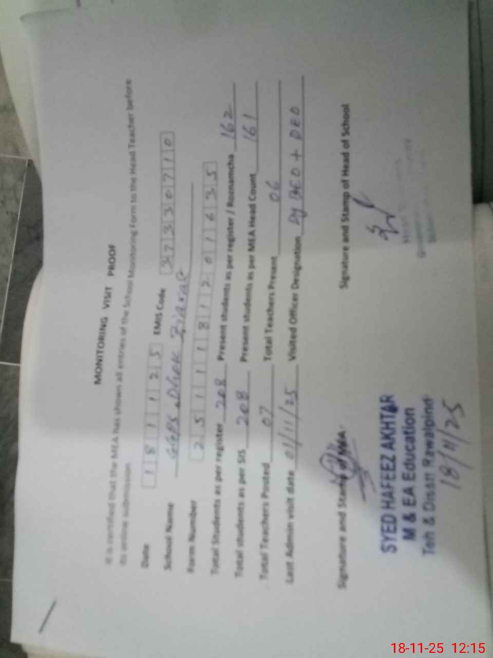 | EMIS Code: 37330710 | Name of School: GGPS DHOK ZIARAT | |||