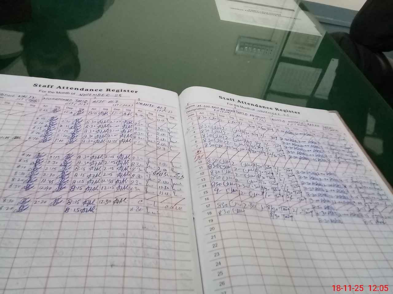 | CNIC | Full Name | Designation | R/C | Absence During Last Calender Month |