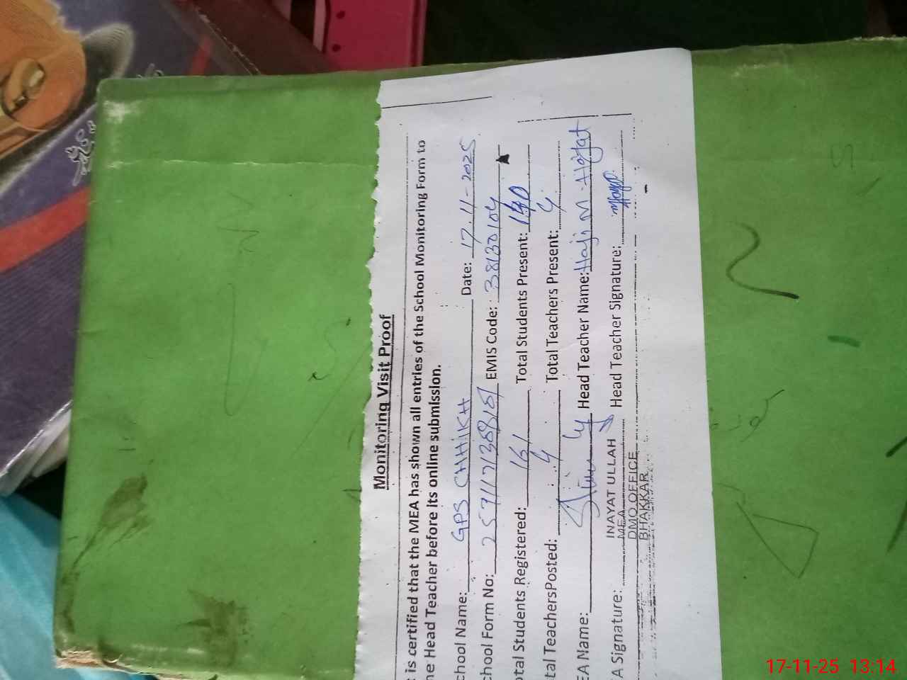| EMIS Code: 38130104 | Name of School: GPS CHHIKAH | |||