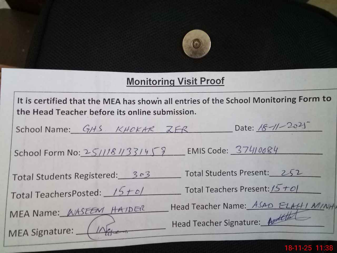 | EMIS Code: 37410084 | Name of School: GHS KHOKHAR ZER | |||