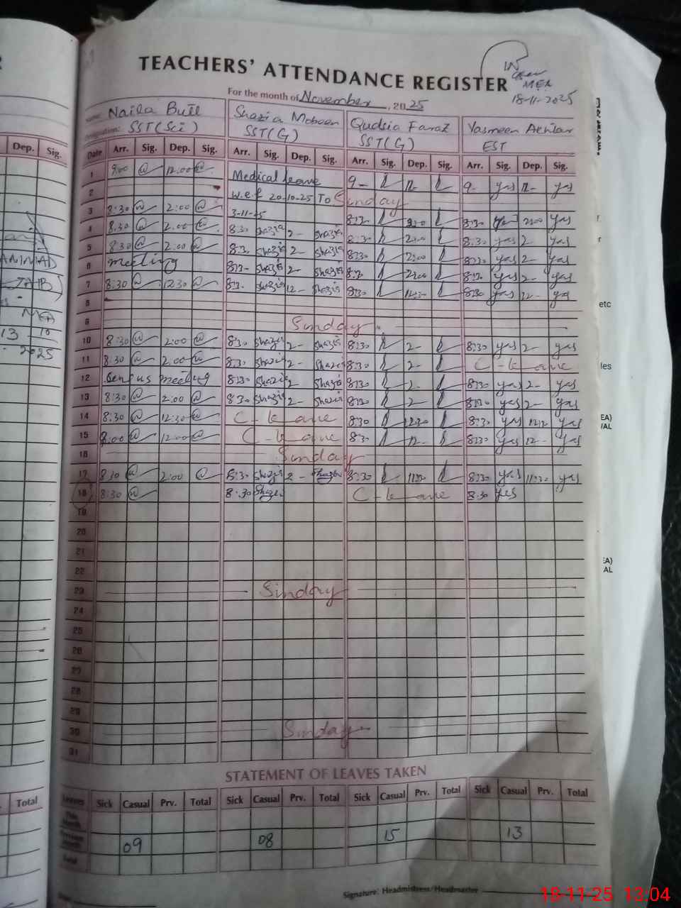 | Leave | Duty | Absent | Maternity | Medical | Ex- Pak |