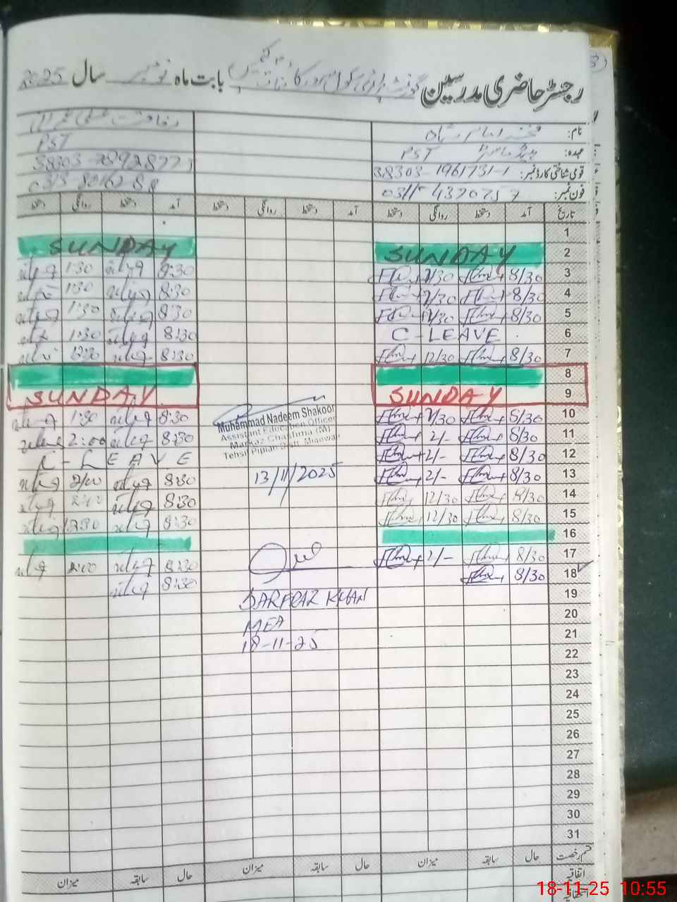 | CNIC | Full Name | Designation | R/C | Absence During Last Calender Month |
