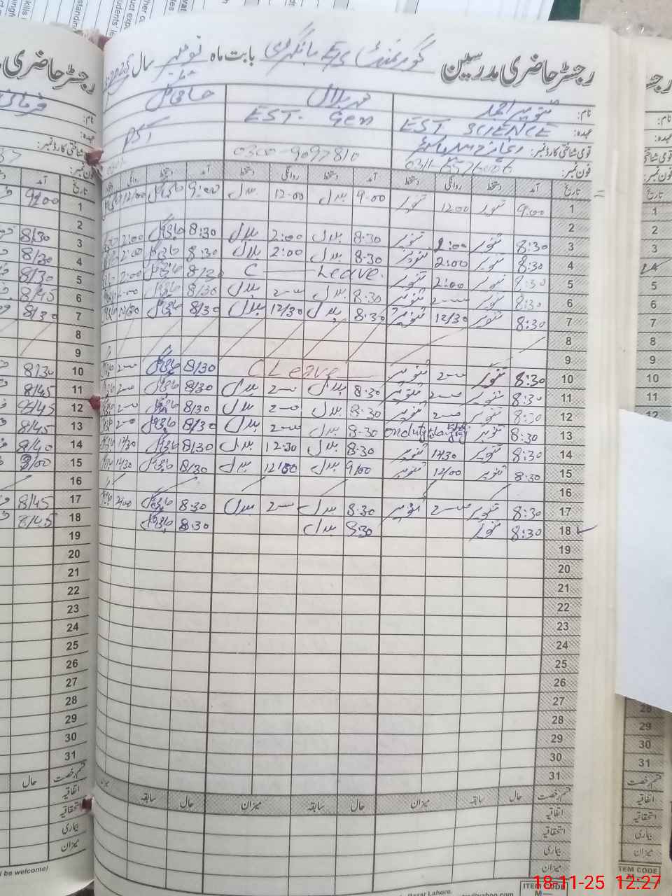 | CNIC | Full Name | Designation | R/C | Absence During Last Calender Month |