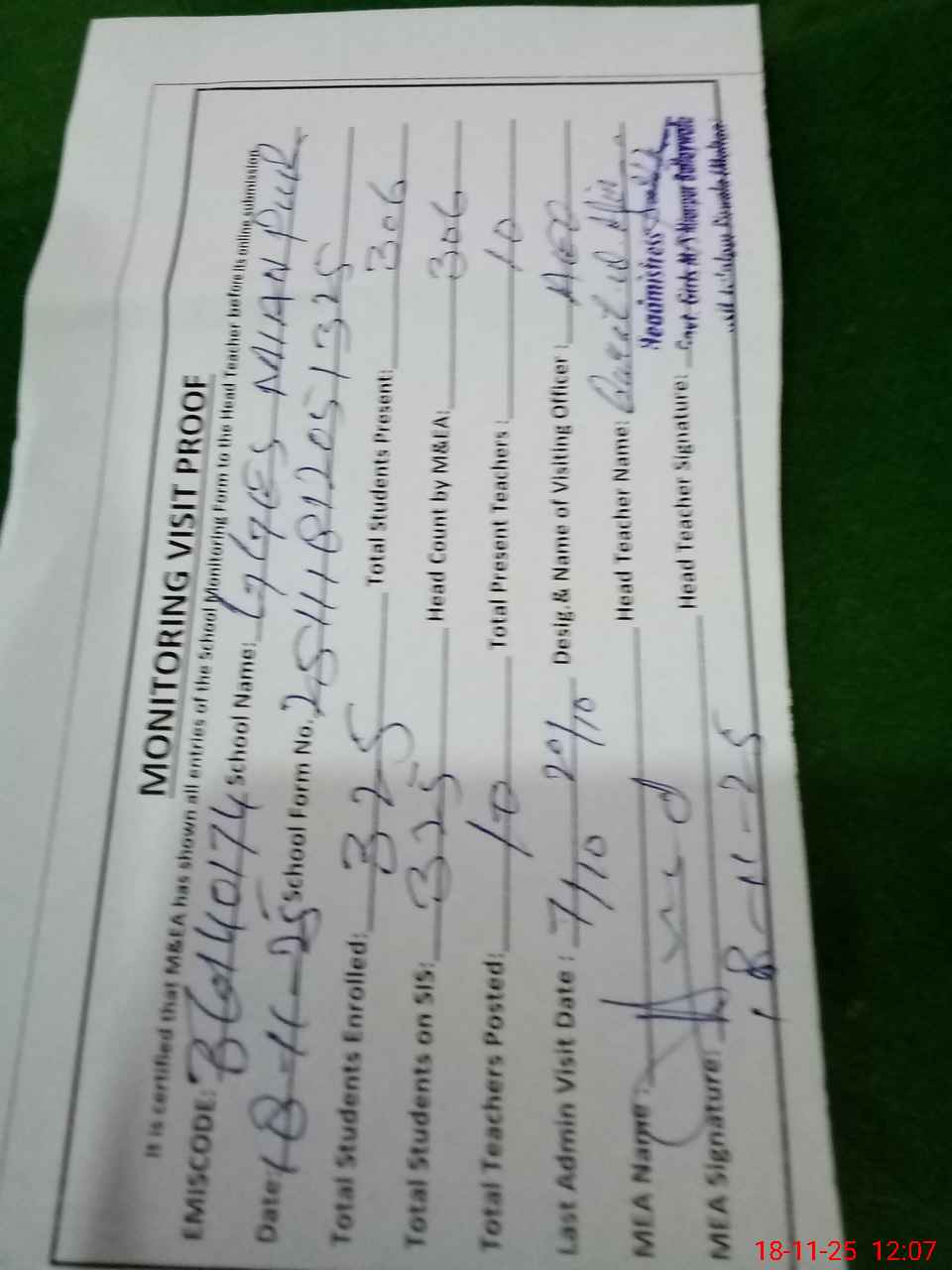 | Certified that this School was Inspected by the Undersigned MEA/DMO Today and the Information Stated Above is as Per Record. | |||||
