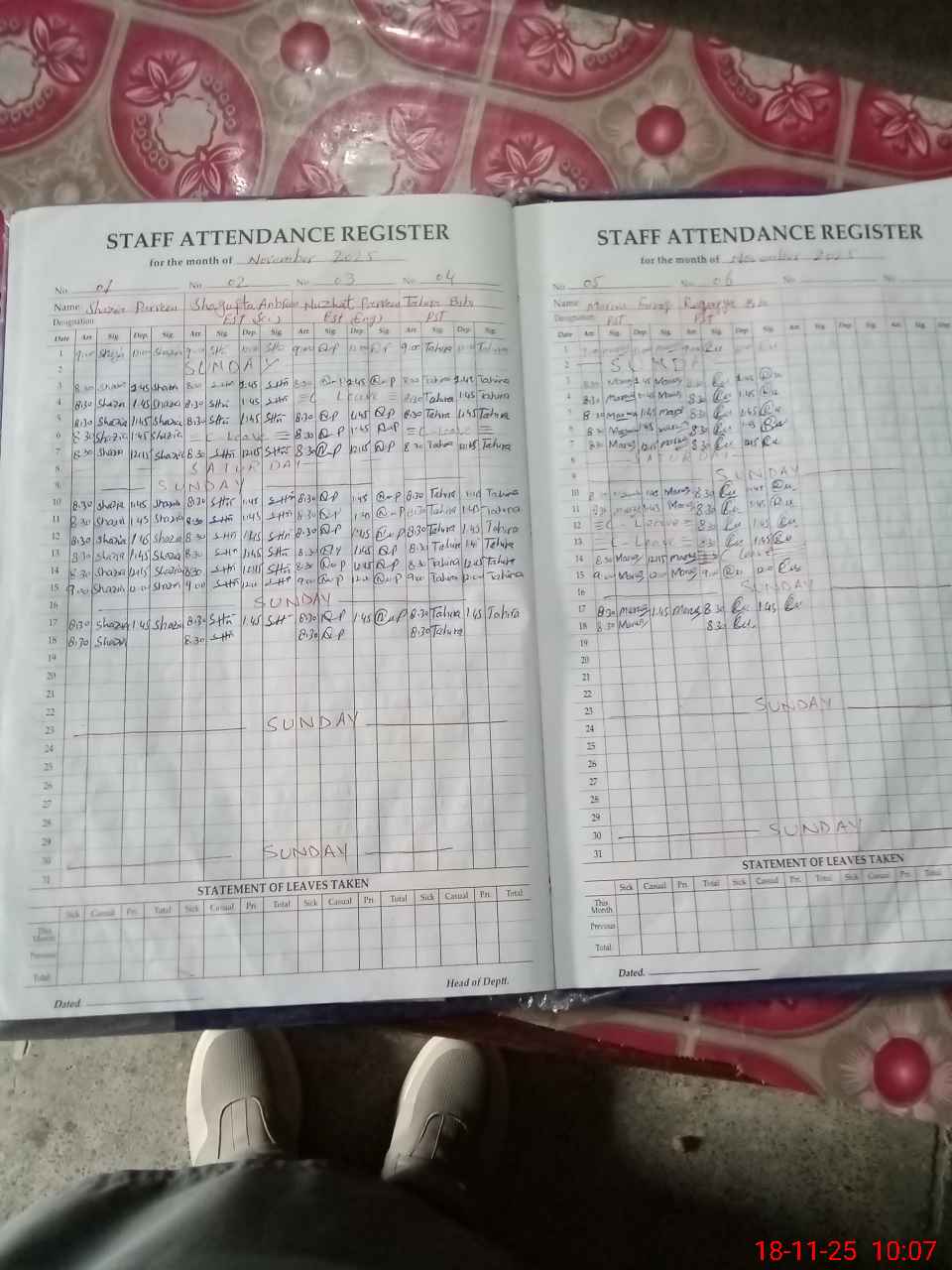 | Leave | Duty | Absent | Maternity | Medical | Ex- Pak |