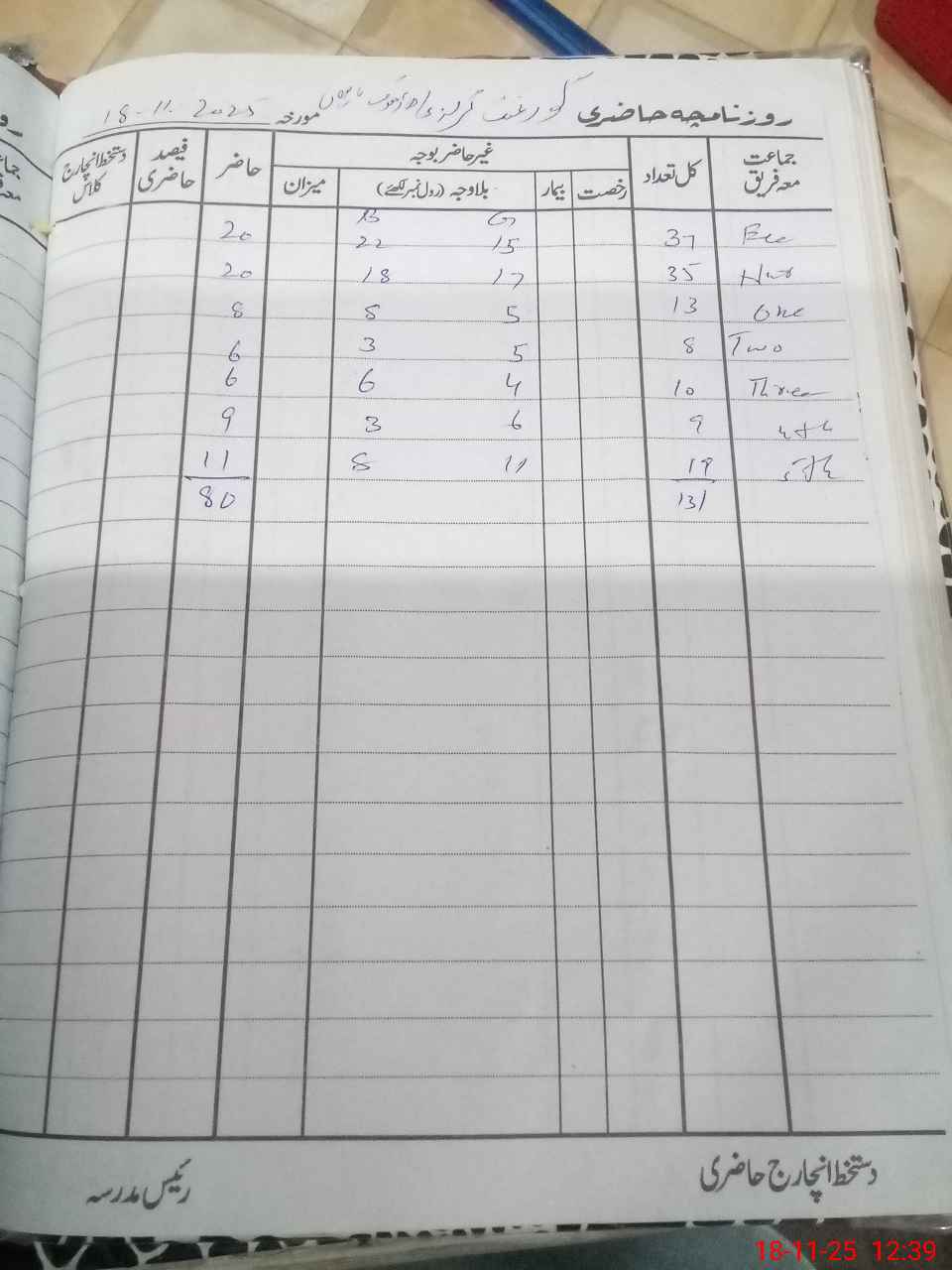 | Total Students Present | 20 | 0 | 20 | 8 | 6 | 6 | 9 | 11 | 80 | |||||||