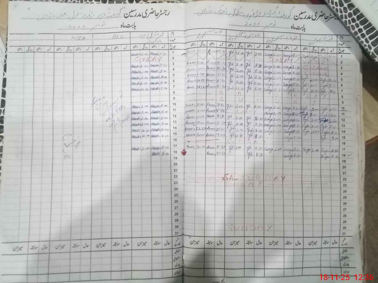 | CNIC | Full Name | Designation | R/C | Absence During Last Calender Month |
