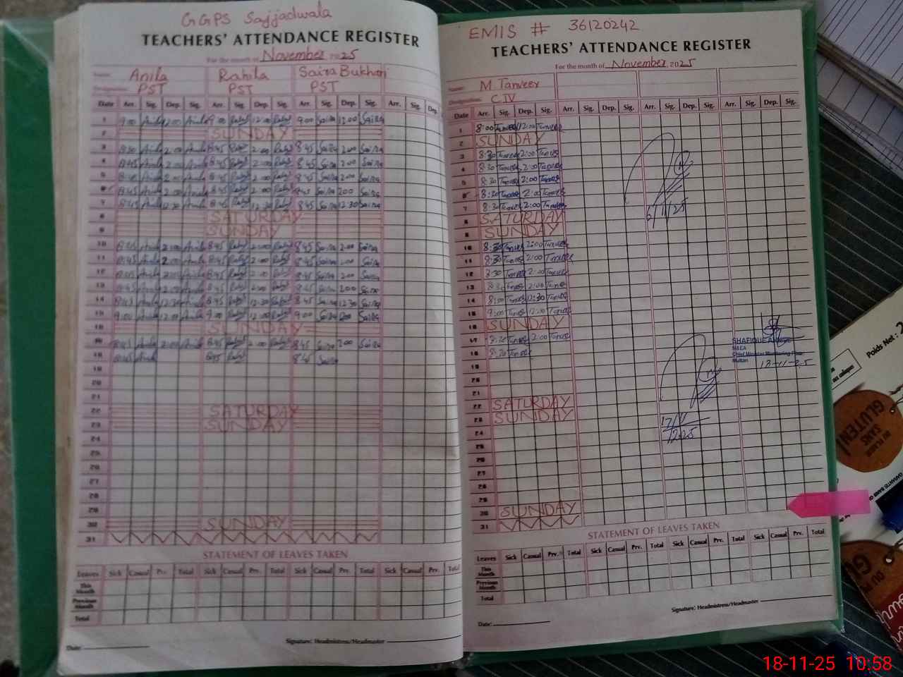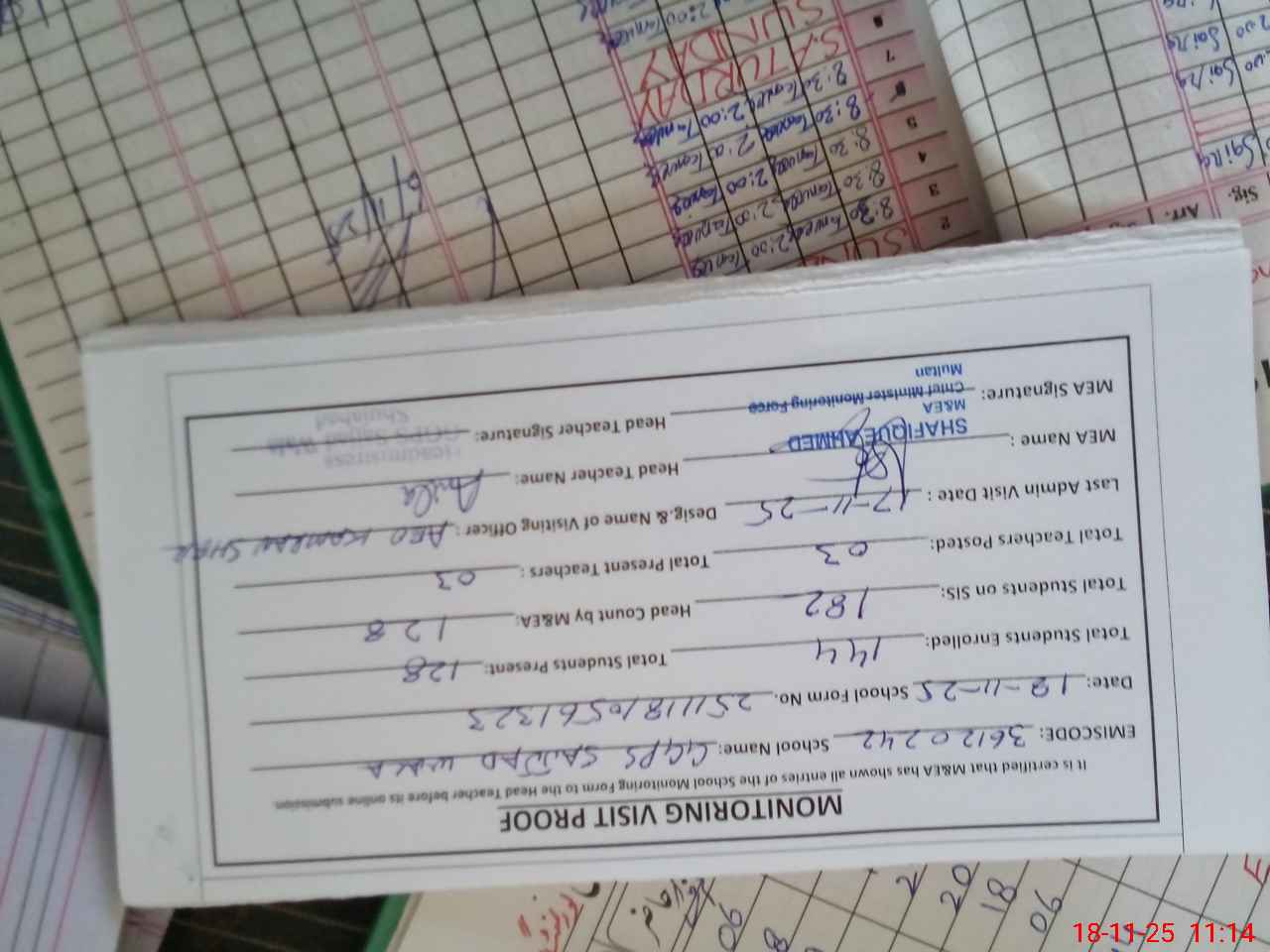 | Attendance Register | Head Teacher | MEA with School | Visit Proof |