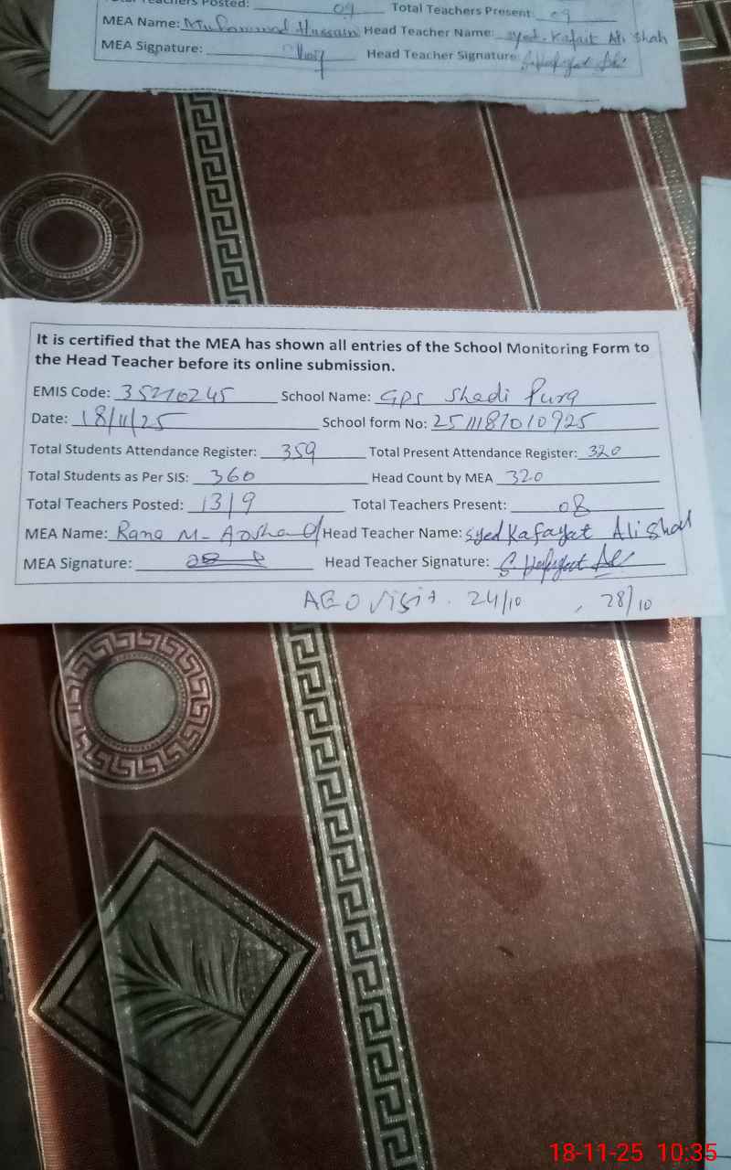 | EMIS Code: 35210245 | Name of School: GPS SHADI PURA | |||