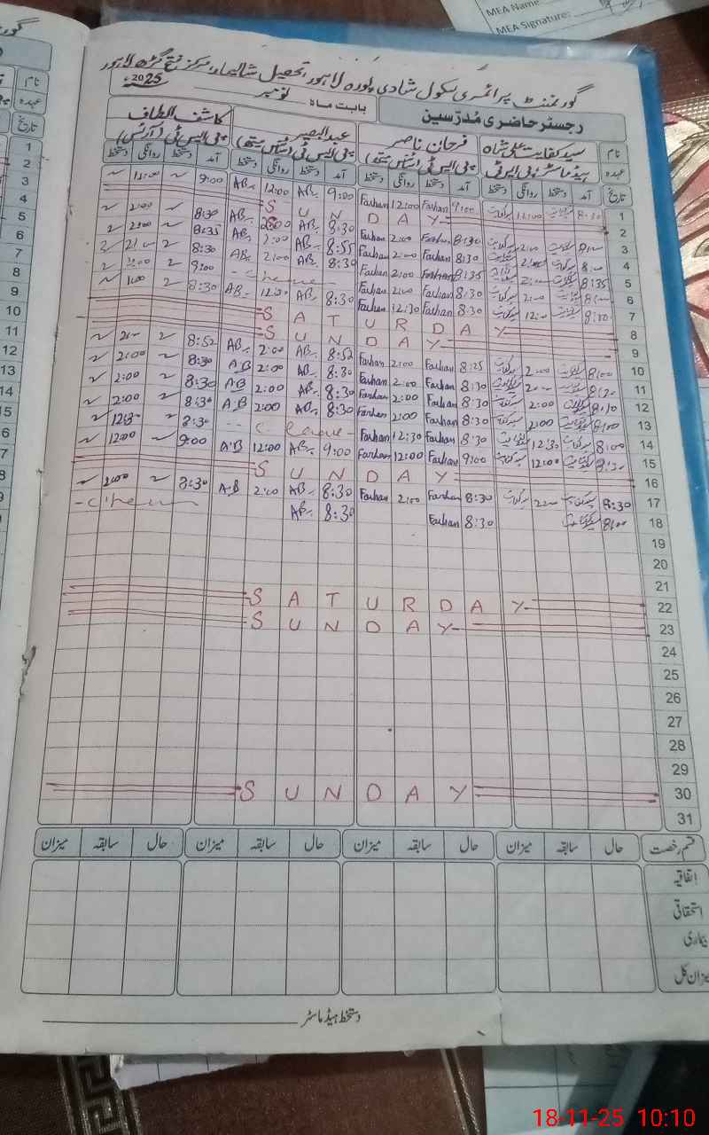 | Attendance Register | Head Teacher | MEA with School | Visit Proof |