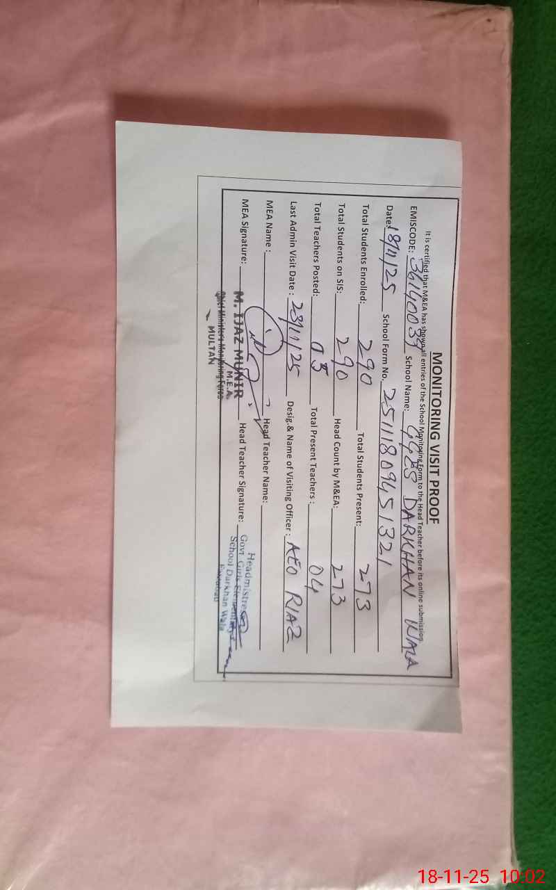 | EMIS Code: 36140039 | Name of School: GGES DARKHAN WALA (FAIZABAD) | |||