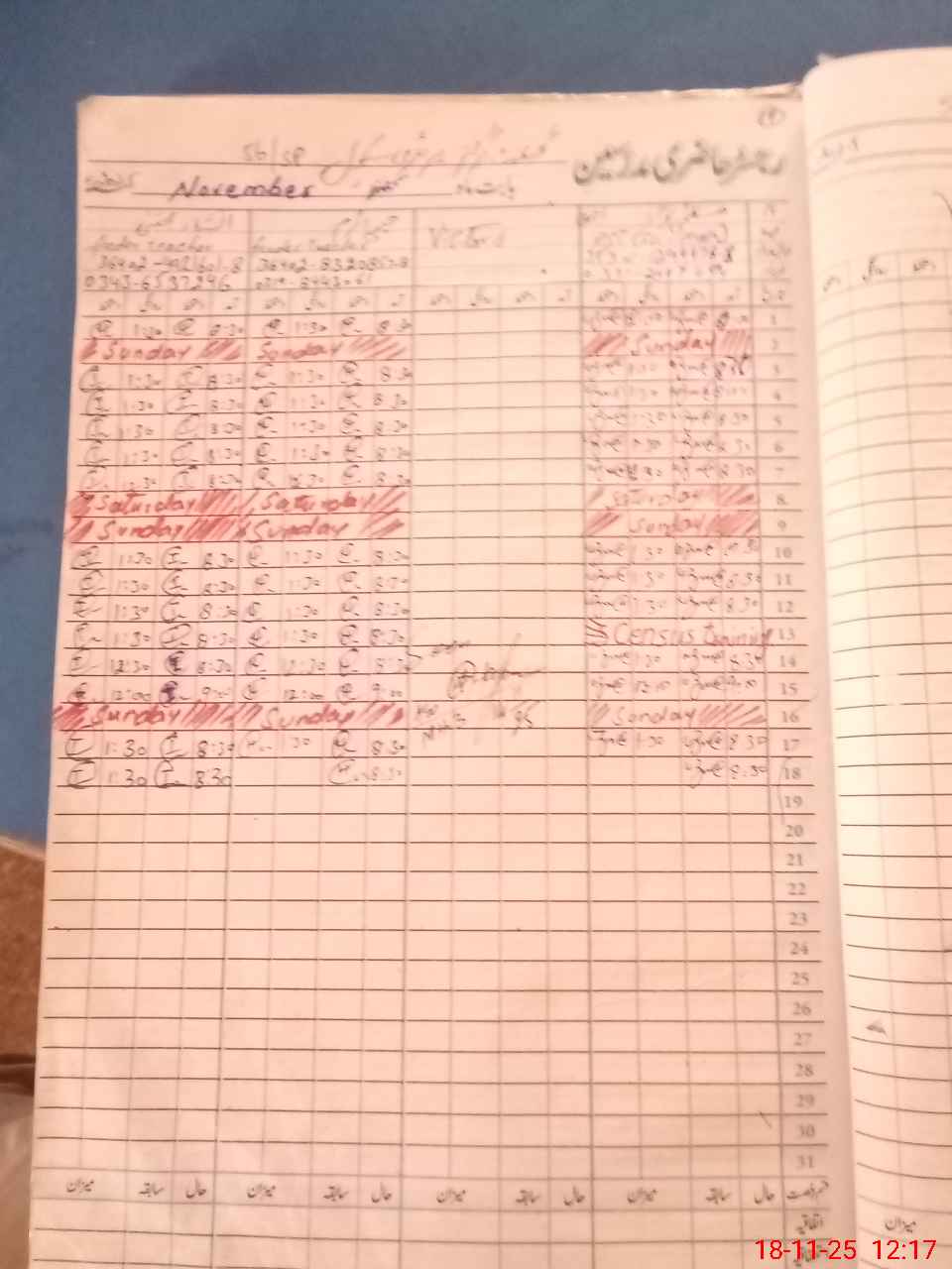 | CNIC | Full Name | Designation | R/C | Absence During Last Calender Month |
